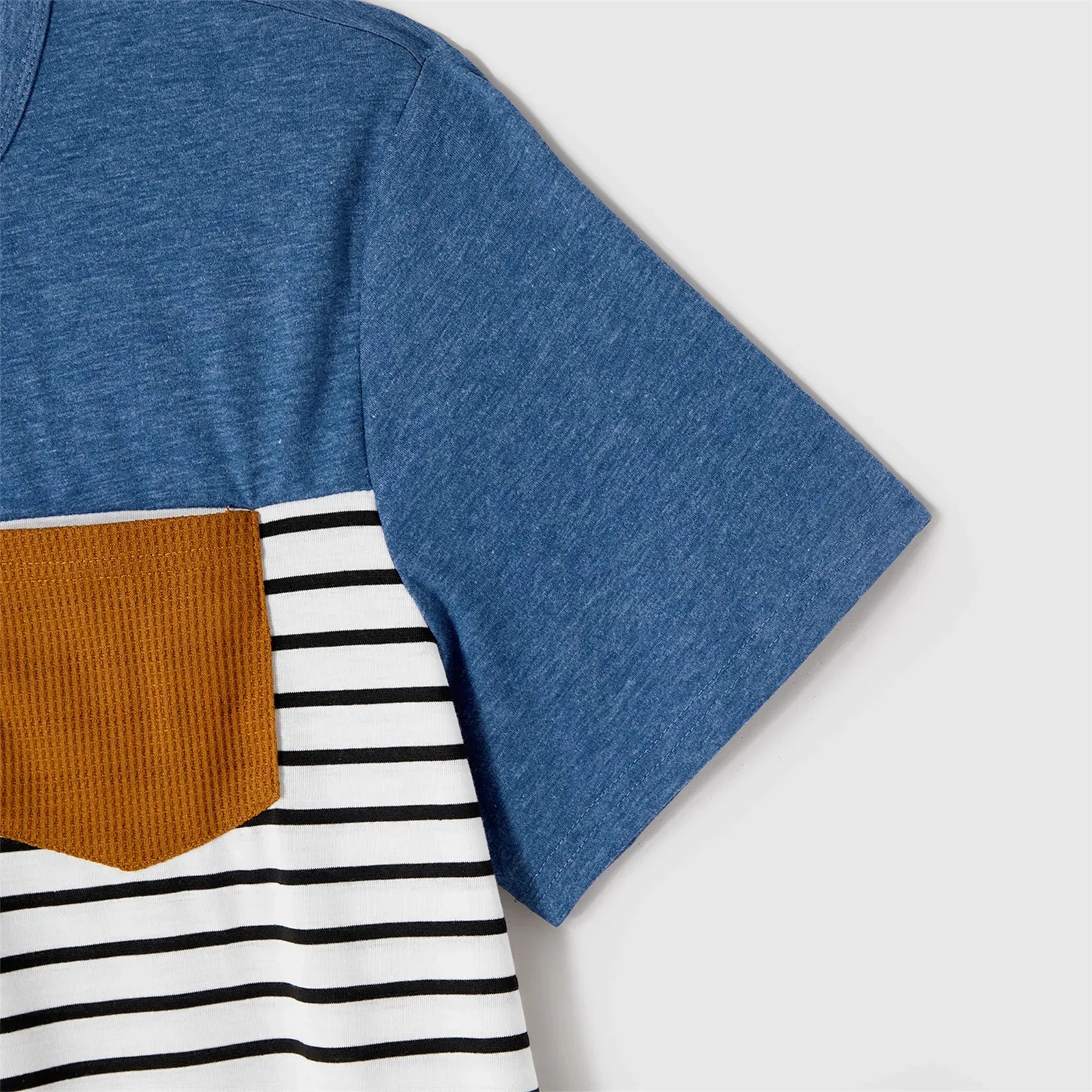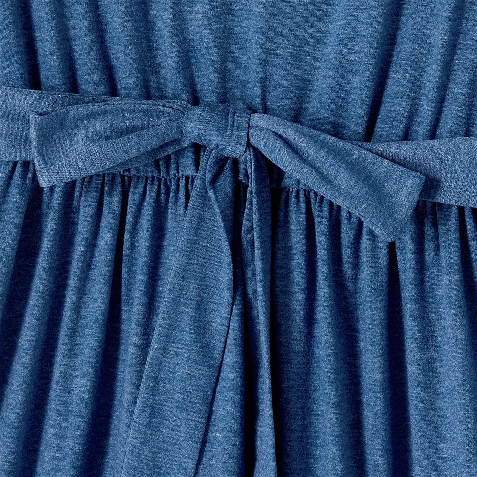 Blue Belted Dresses and Striped T-shirts Sets for Family