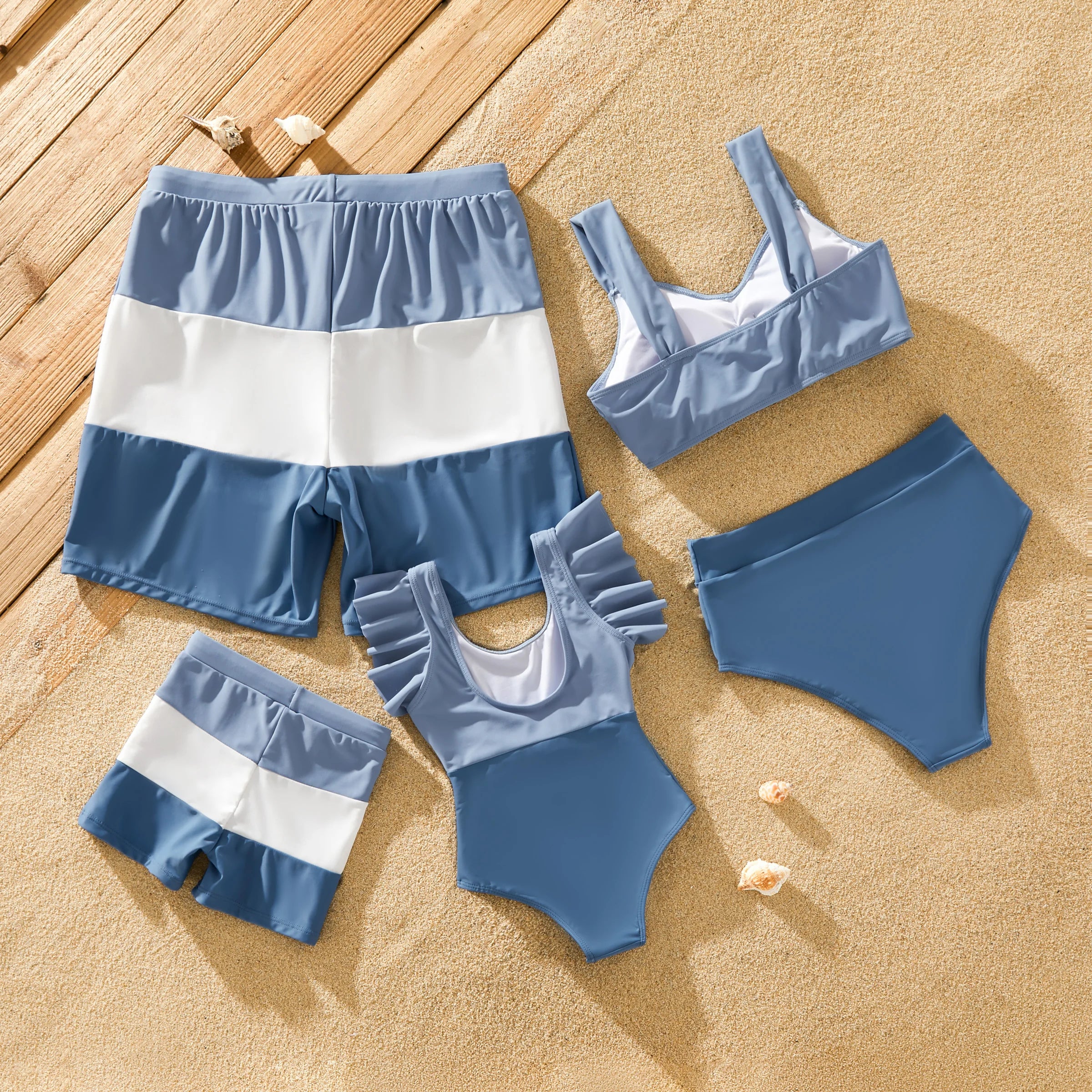 - Our swimwear set features a matching design for the whole family, making it a delightful choice for family vacations and outings.