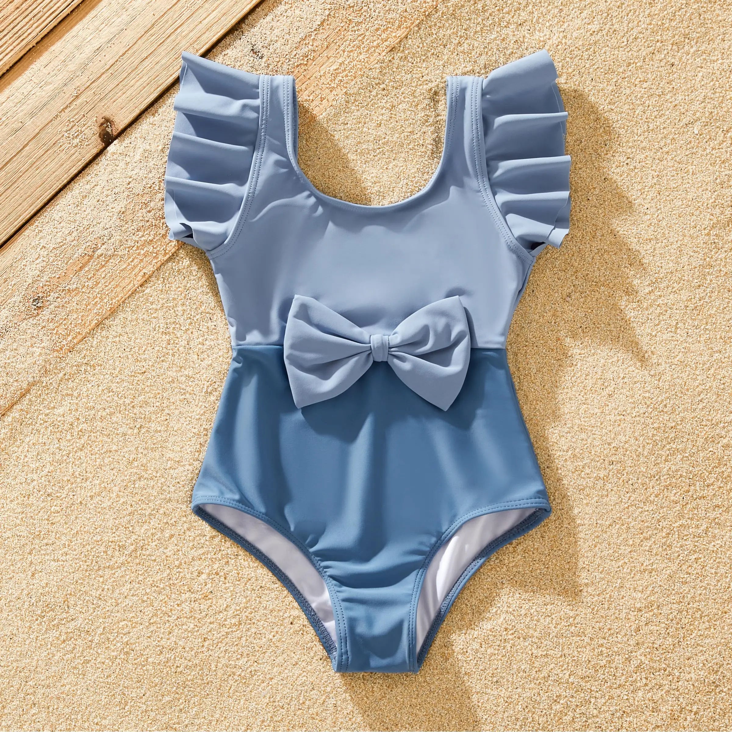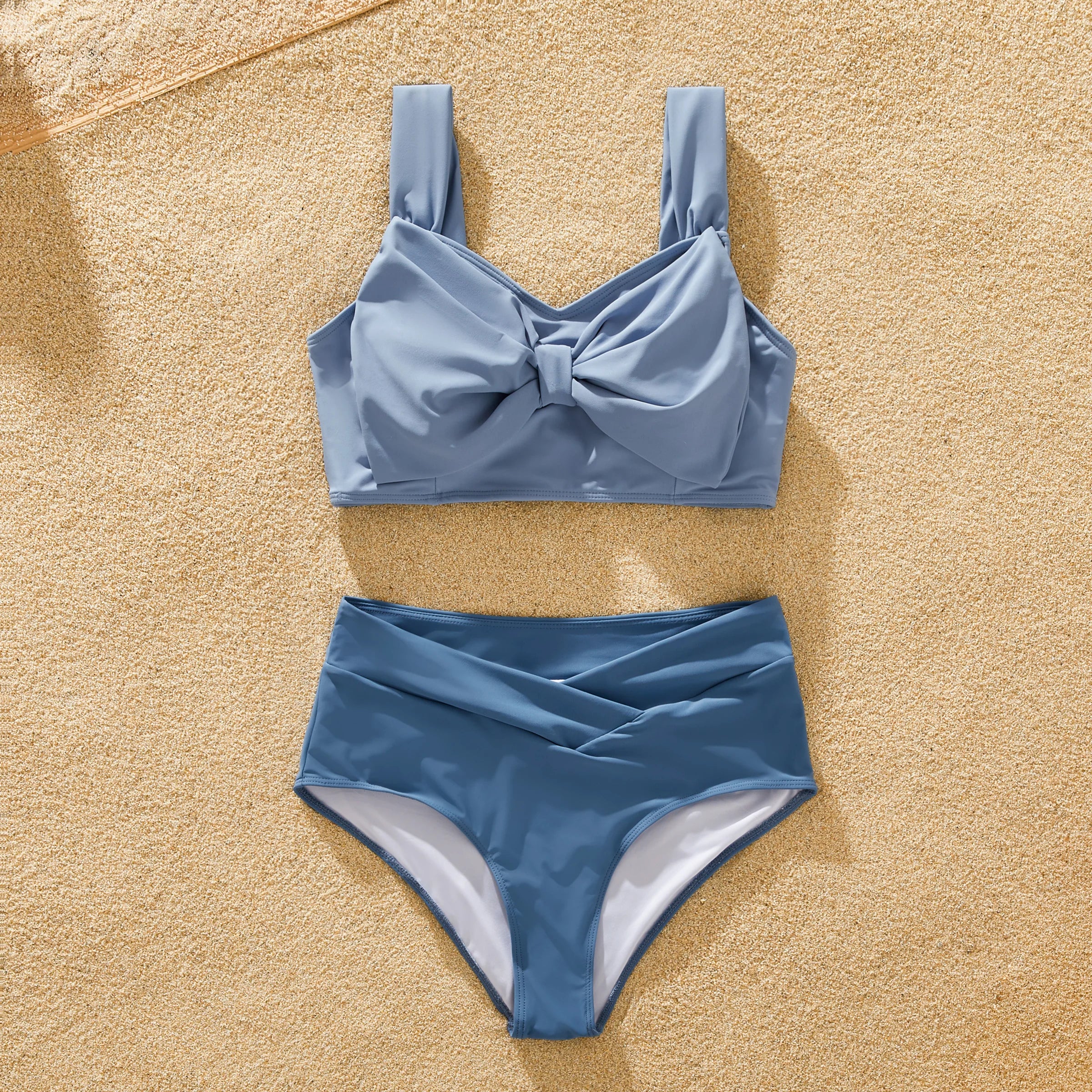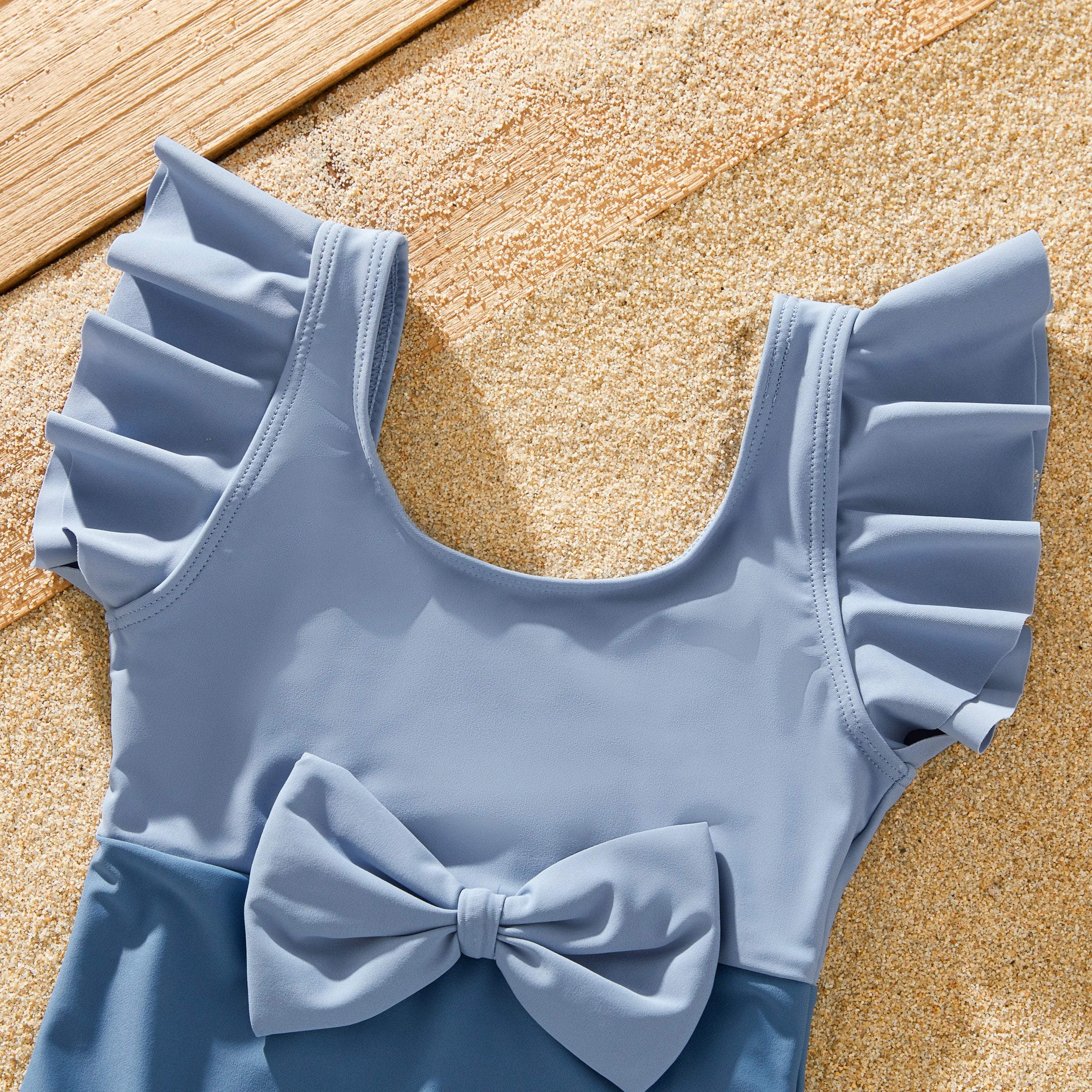 Product Introduction: Elevate your family's beach style with our stunning Blue Family Matching Swimwear Set. Designed with chic big bow knot details and crafted from elastic fabric, this swimwear set ensures both style and comfort for every member of the family. The Morandi color scheme adds a touch of sophistication, while the combination of deep blue, light blue, and white creates a harmonious and fashionable look that's perfect for any beach outing, pool party, vacation, or swimming adventure.