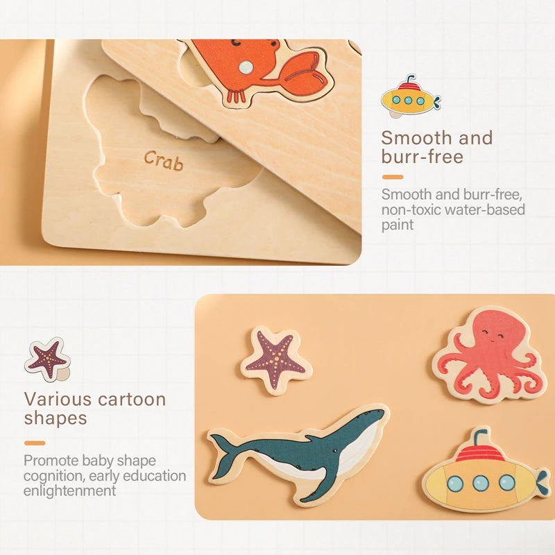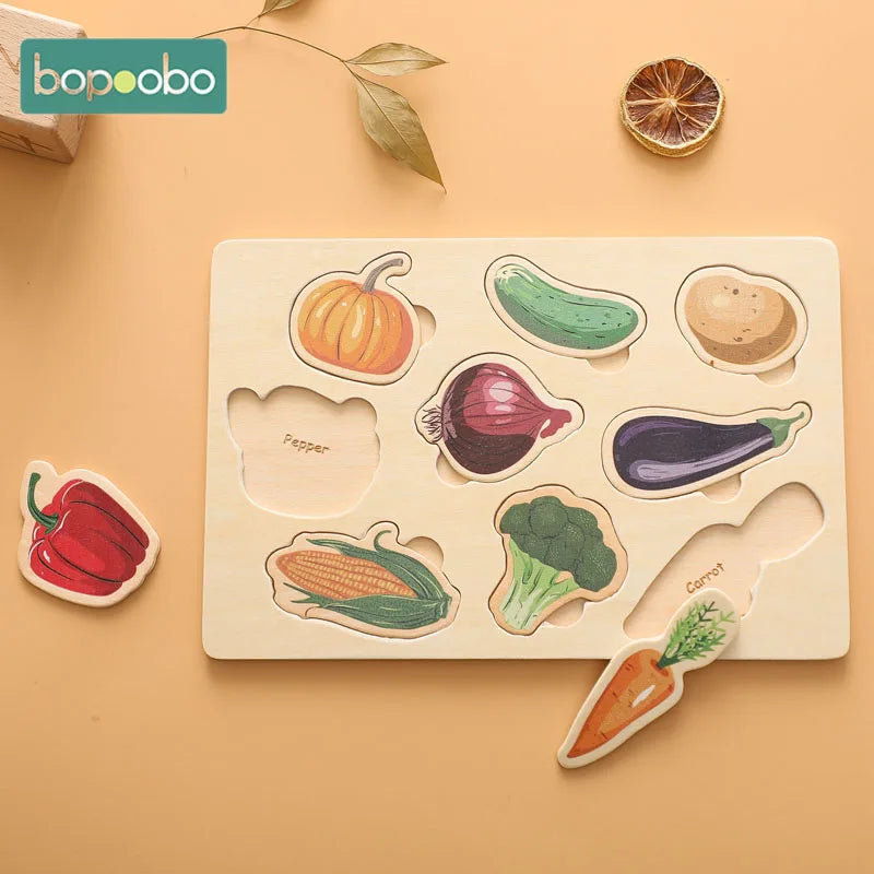 Bopoobo 1pc 3D Wooden Puzzle Montessori Toys – Ocean, Animal, or Vegetable Theme | Educational Matching Toy for Toddlers