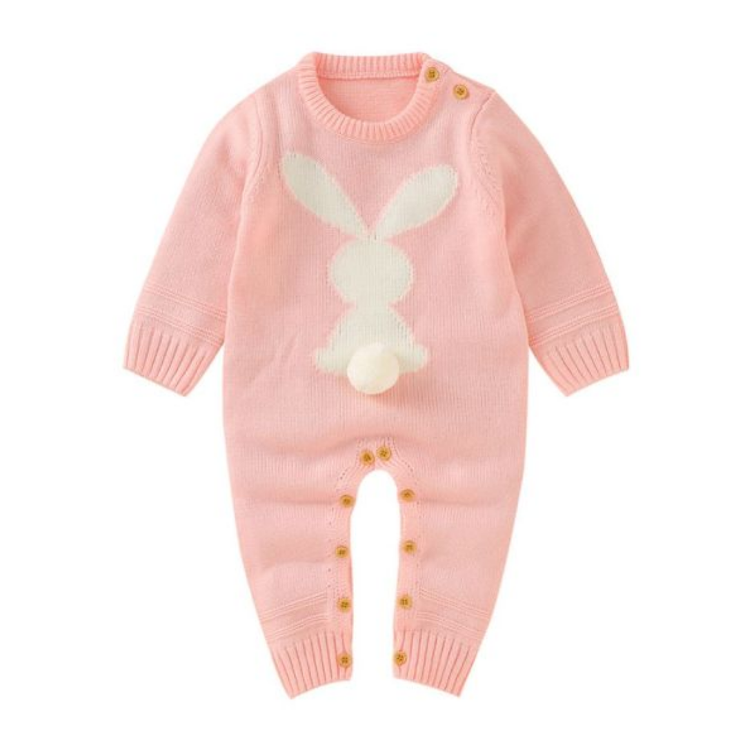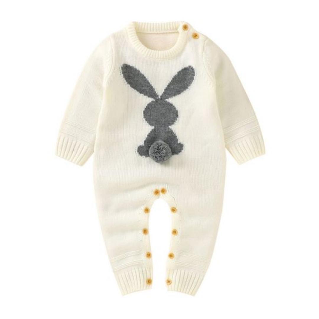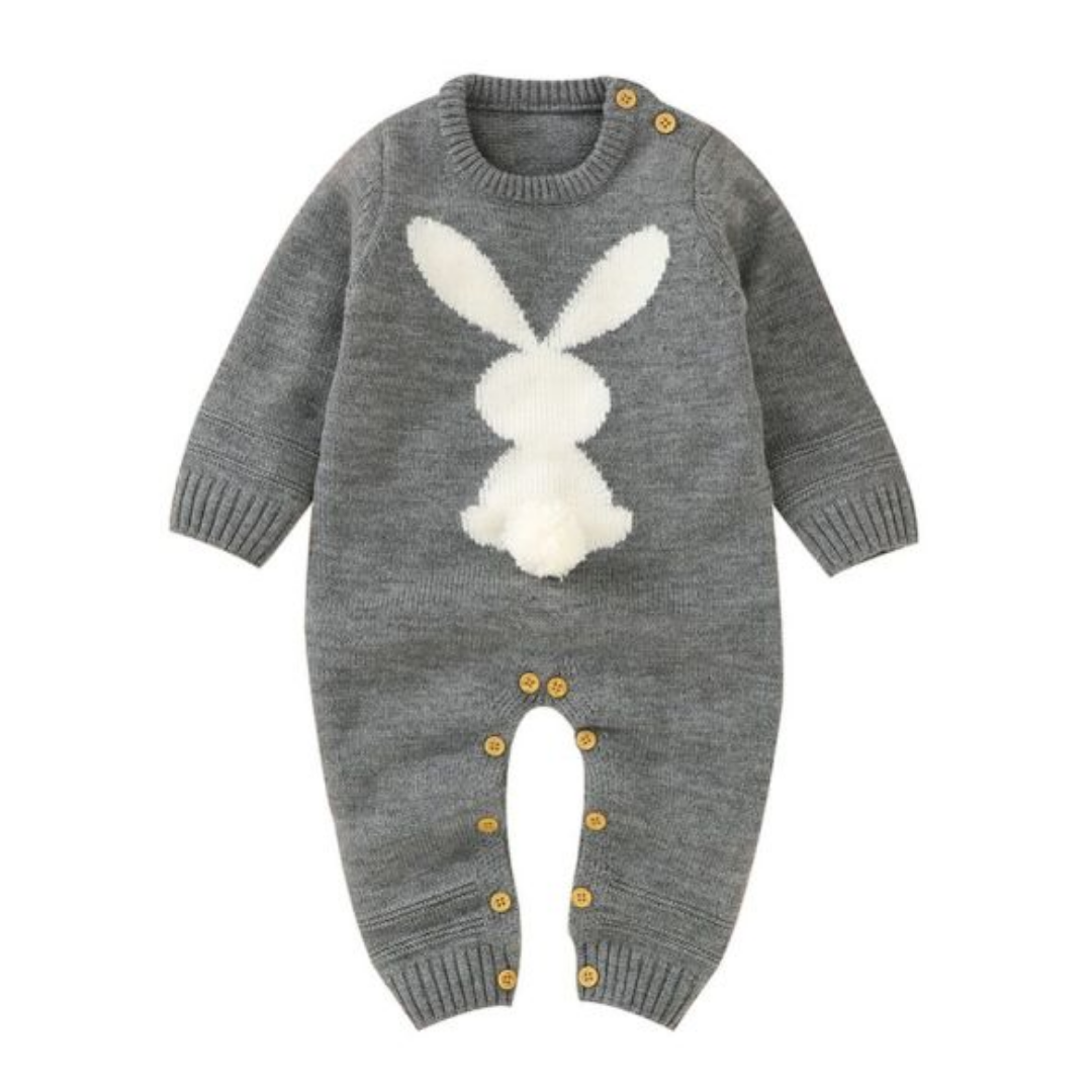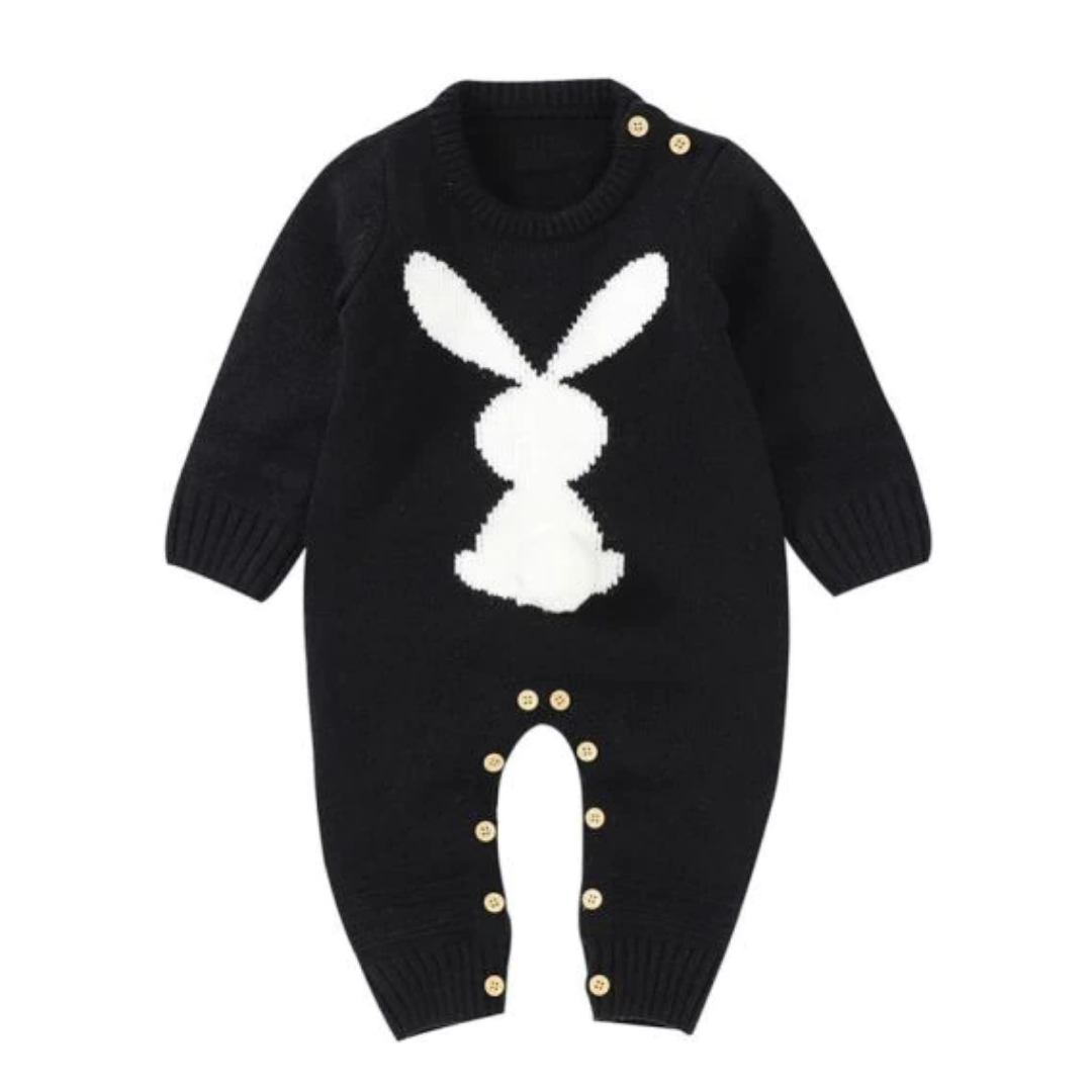Bunny Silhouette Print Overall Long Sleeve Romper