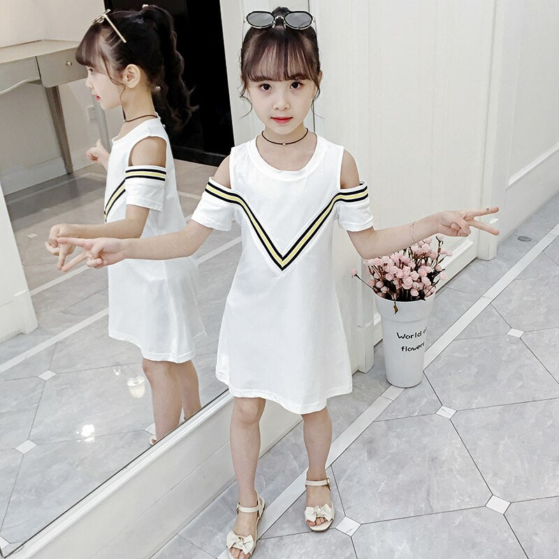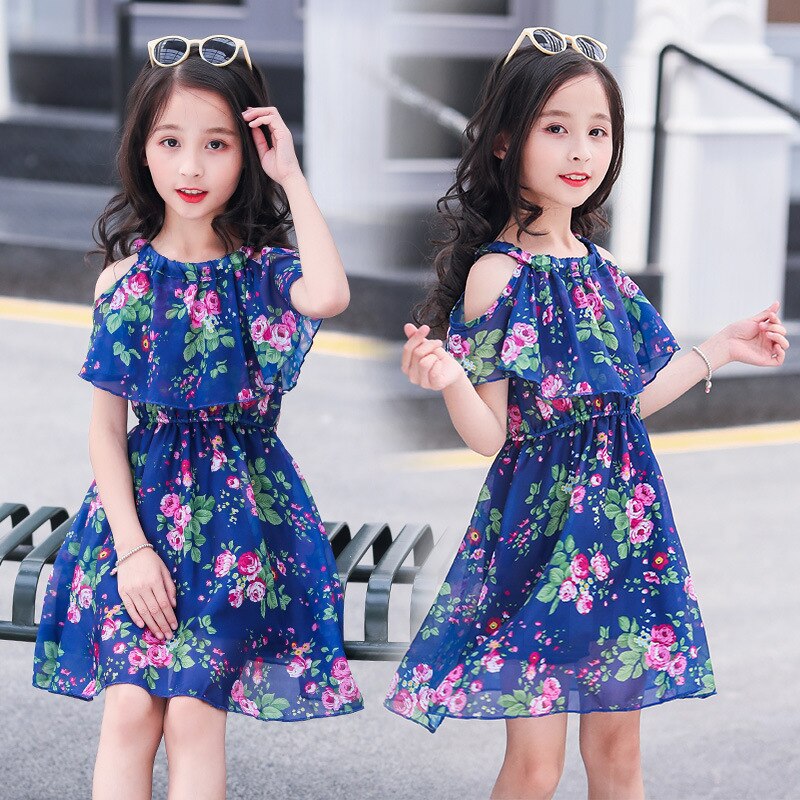 Butterfly Print Design Cold Shoulder Girl Summer Dress
