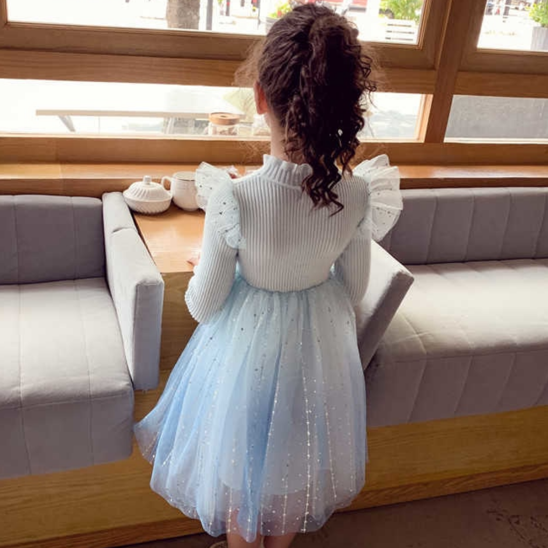 Doesn't your kid's wardrobe need a little something extra to spice it up? We recommend this Butterfly Sleeves and Diamond Rhinestone Knitted Girl Dress, which features a comfortable, casual outfit with a fun twist. Your daughter will feel like royalty in this beautiful dress.
