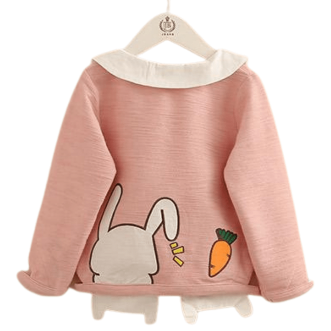 This Carrot Rabbit Toon Patchwork Design Sweater is made of cotton and polyester, which is suitable for the cold season. It is a full-sleeved sweater and has a collar that can make your little girl feel warm. This sweater has a rabbit and carrot patchwork design on it, which makes it cute and lovely.