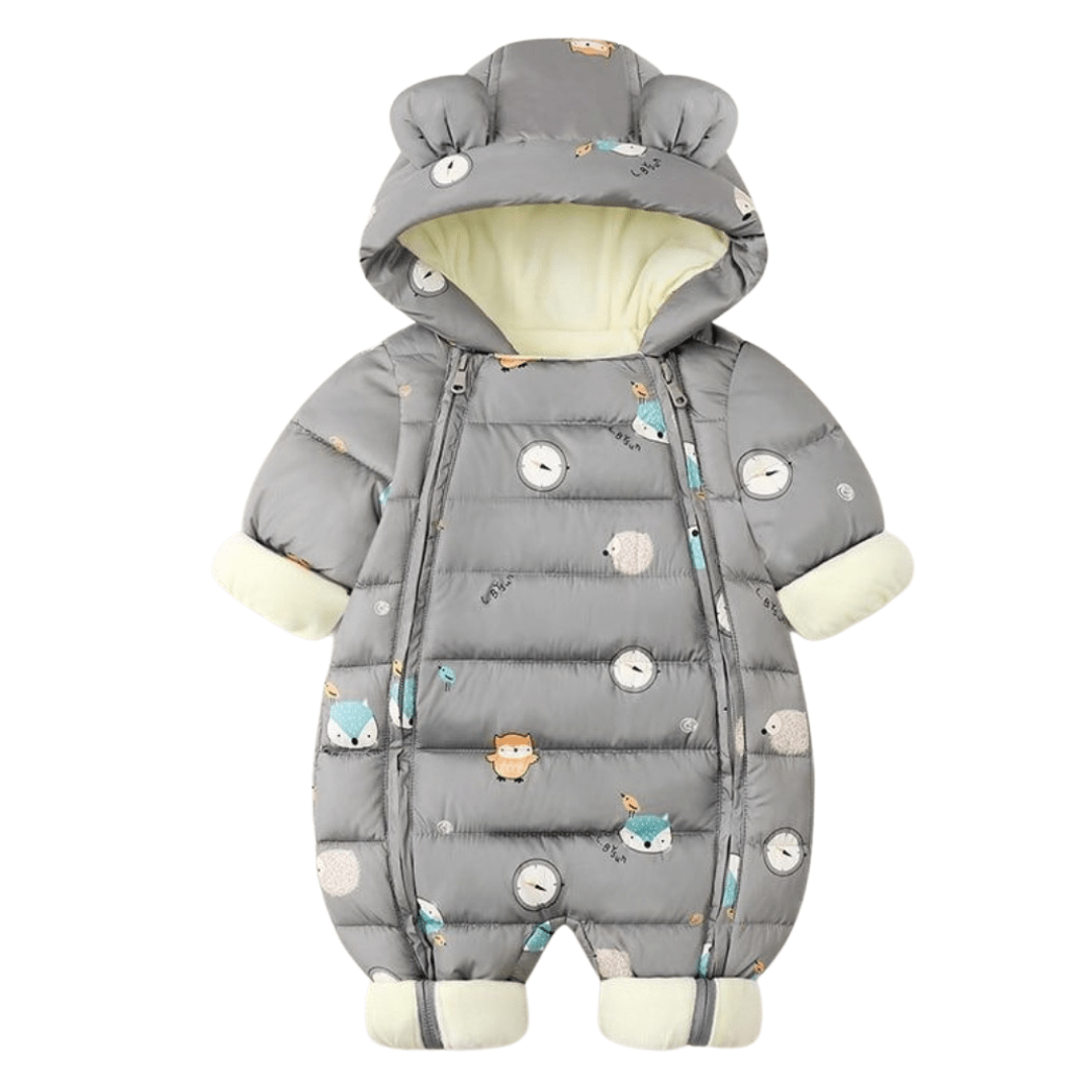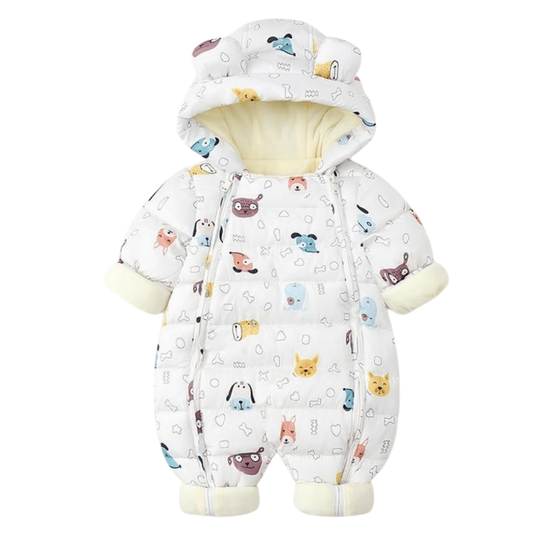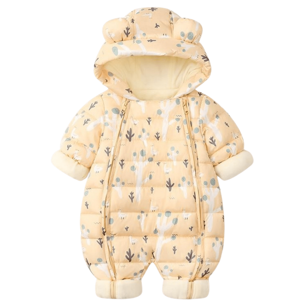 This Cartoon Design Pattern Hooded Parka Jumpsuit is made of high-quality cashmere, cotton, and polyester which makes it a perfect garment for the cold season. It is a cute and warm jumpsuit for your baby with a cartoon print design on it. The designs are unique which makes it a perfect gift for your baby!