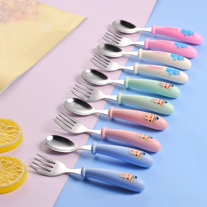 Introducing the Children's Convenient Tableware Set - Toddler Fork and Spoon Duo