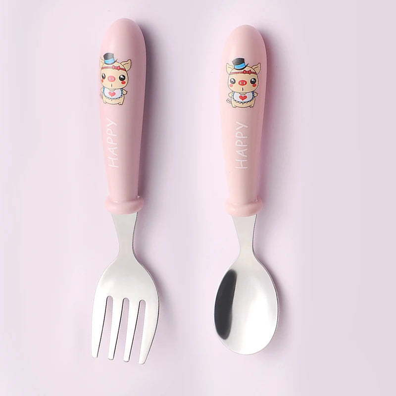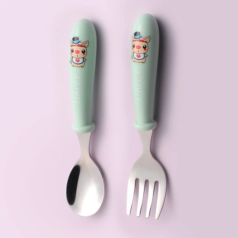 Upgrade your toddler's dining experience with our convenient Children's Tableware Set. This specially designed fork and spoon set is crafted from high-quality stainless steel, ensuring durability and safety for your little one's mealtime adventures.