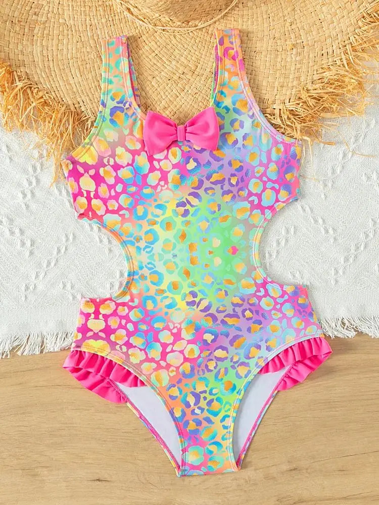 π DIVE INTO FUN WITH THE COLORFUL BOW RUFFLE ONE-PIECE GIRLS' SWIMSUIT! ποΈ