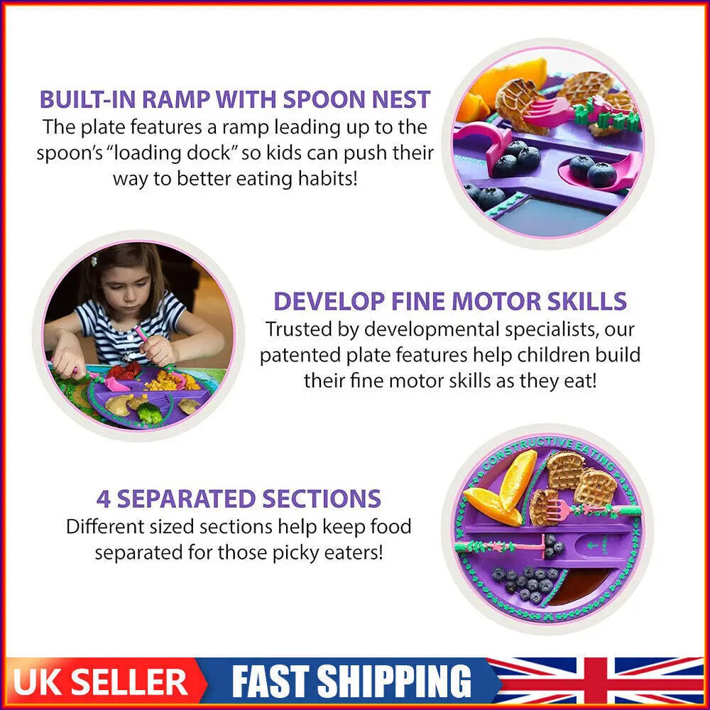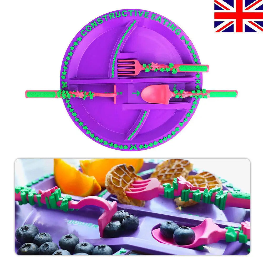 Make mealtimes fun, engaging, and educational! Click 'Add to Cart' now to secure this constructive eating utensil set and plate!