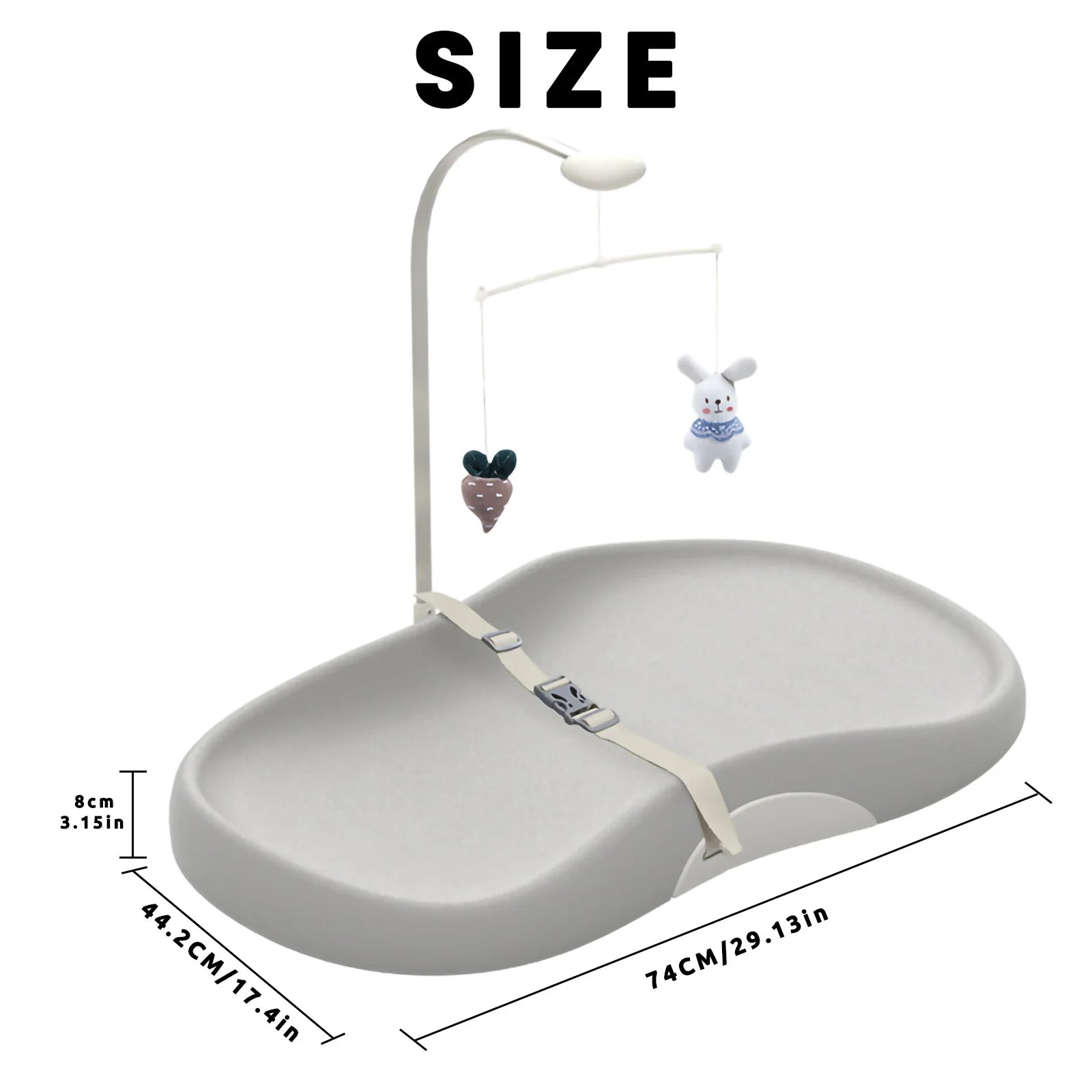 Engaging Removable Toy Mobile: The fun toy tray with hanging soft toys (bunny and carrot/strawberry) can attract the baby's attention and create a calming atmosphere, helping to soothe and distract your baby during changes.