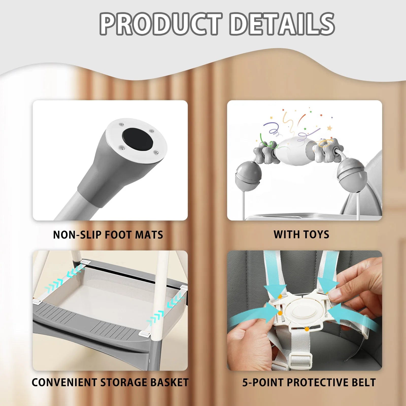 Comes with a detachable toy bar to entertain your baby during mealtime