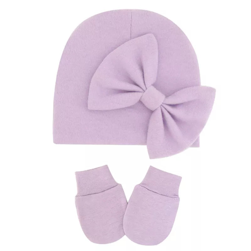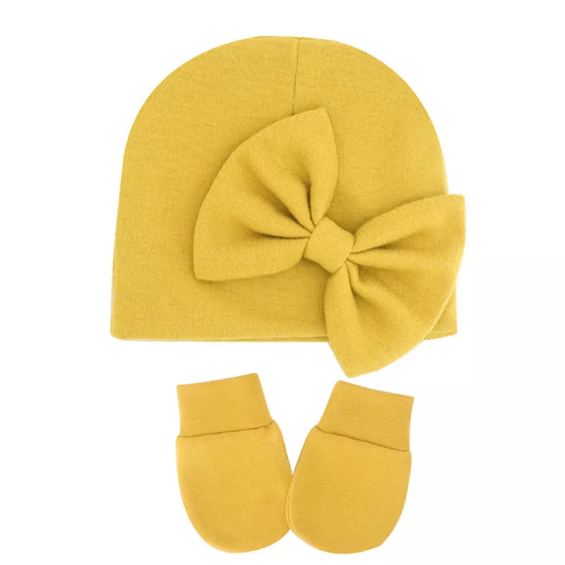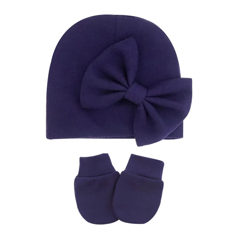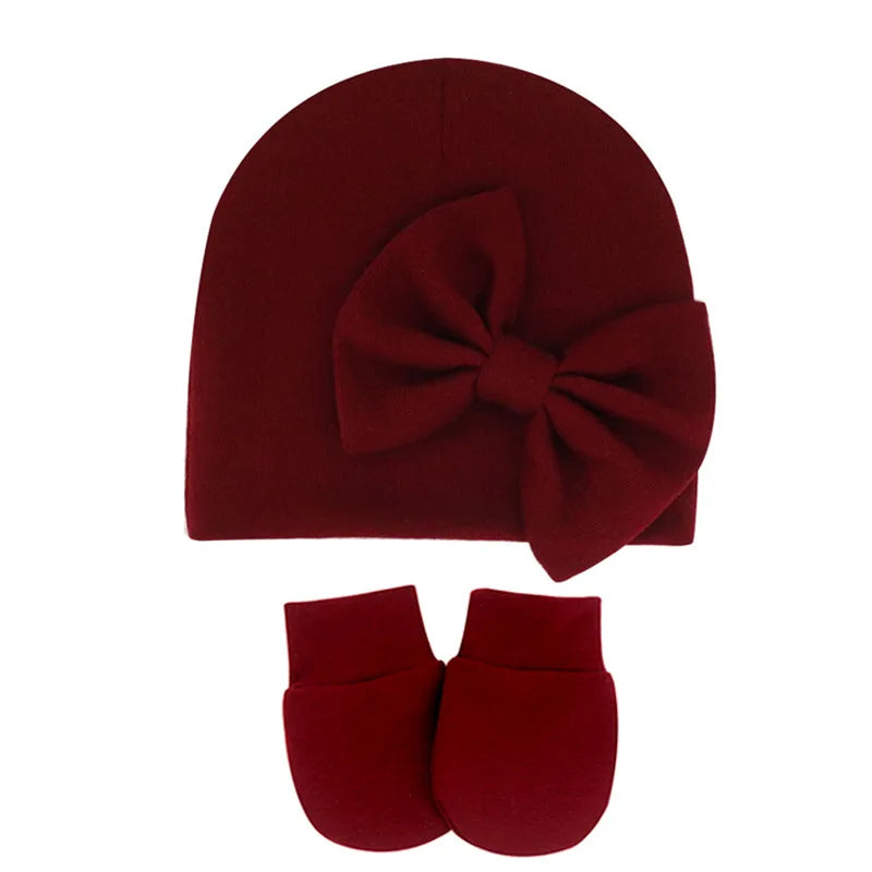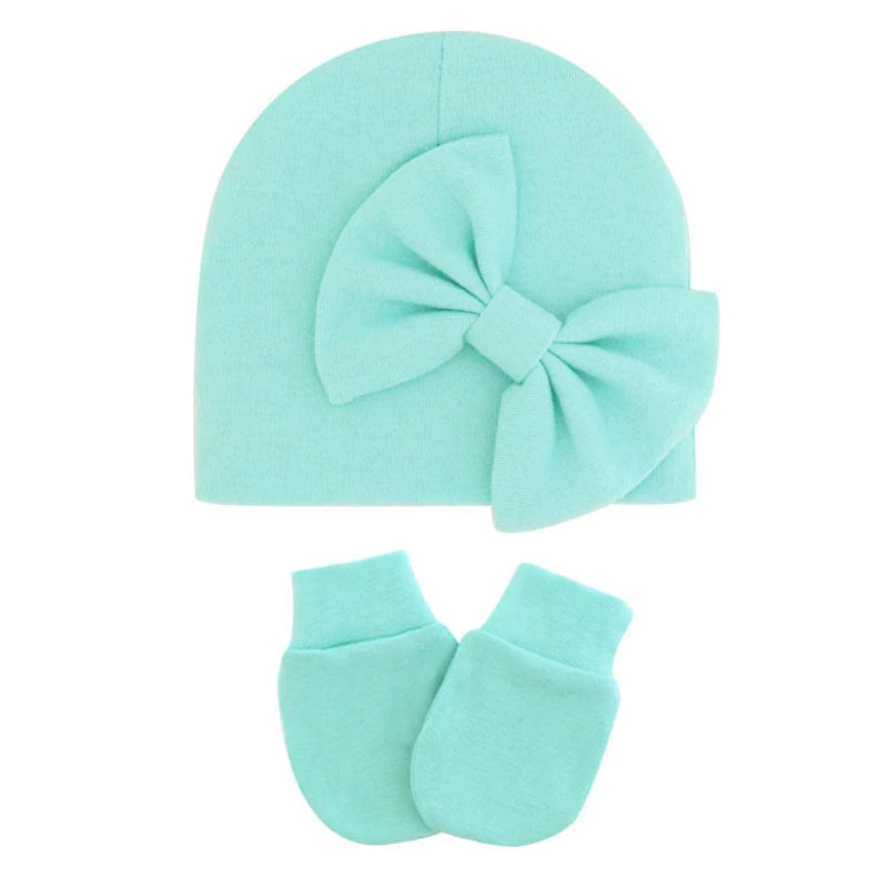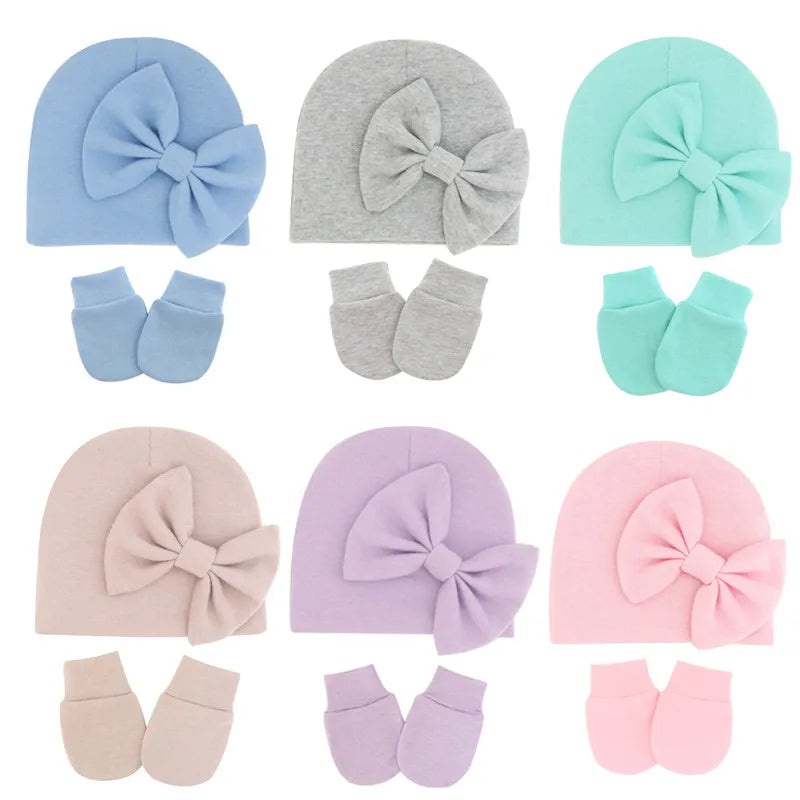 Cotton Baby Girl Hat & Gloves Set - Stylish Newborn Accessories