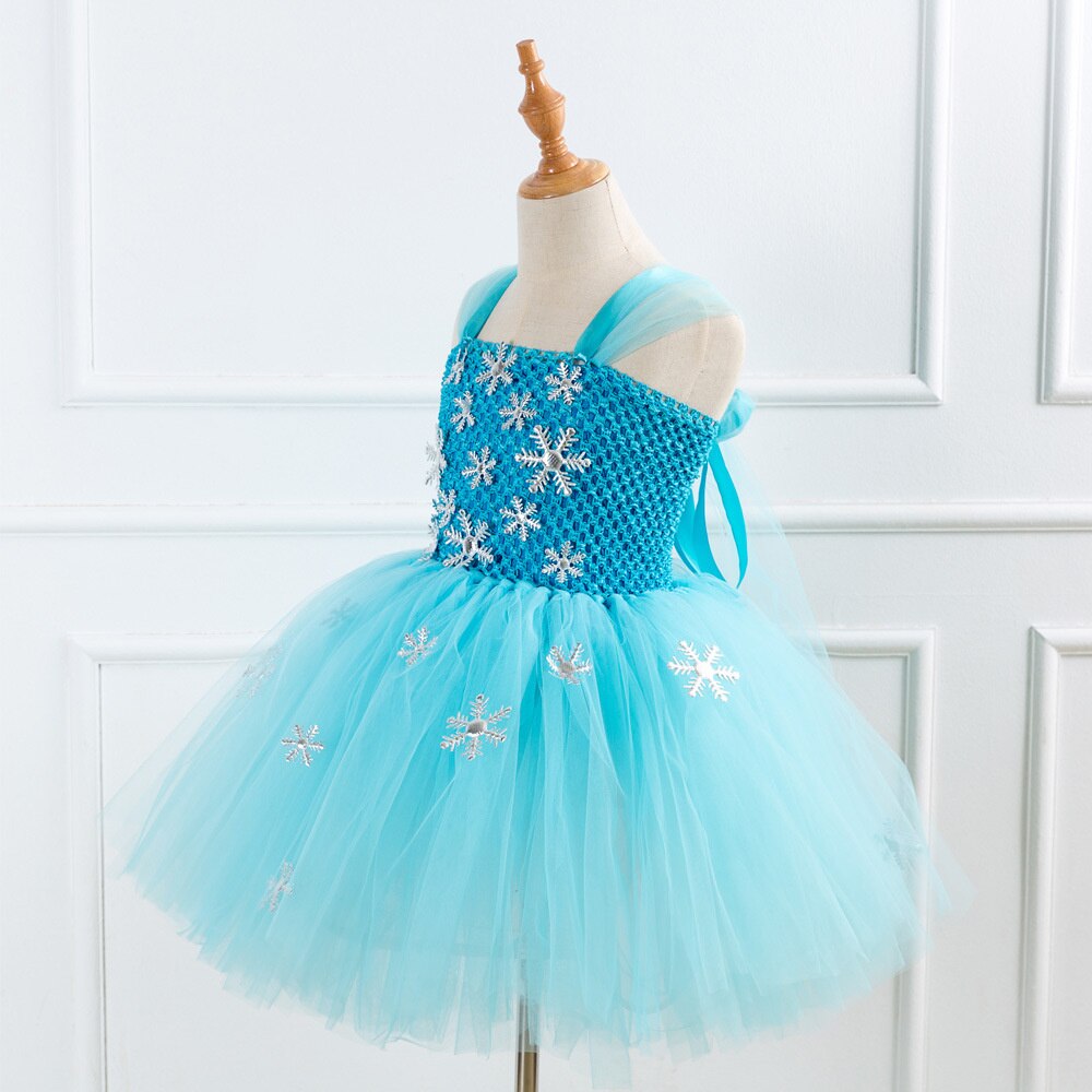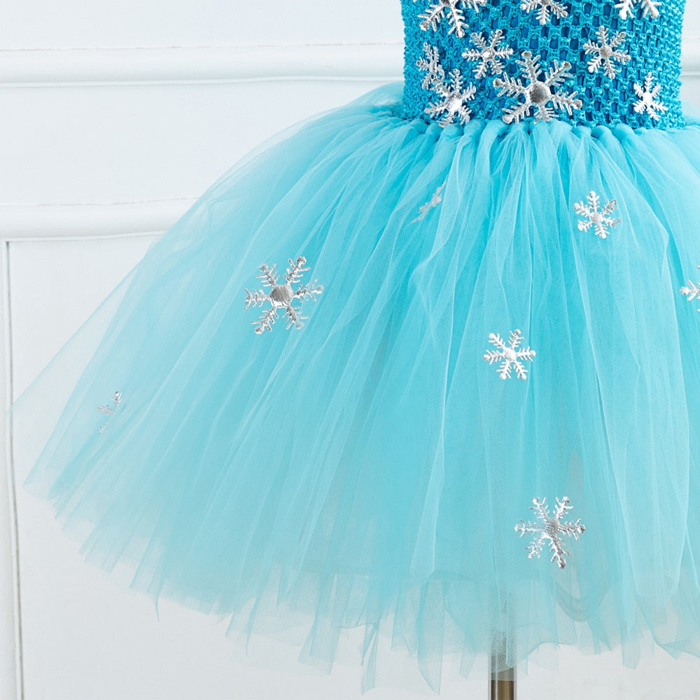Dress up your little princess and make her look like a snow queen ballerina or fairy-tale character! With its detailed design appliques, this Crochet Top Snow Flakes Ice Princess Costume Tutu Dress Set is just what any baby girl needs for her next snow princess cosplay party.