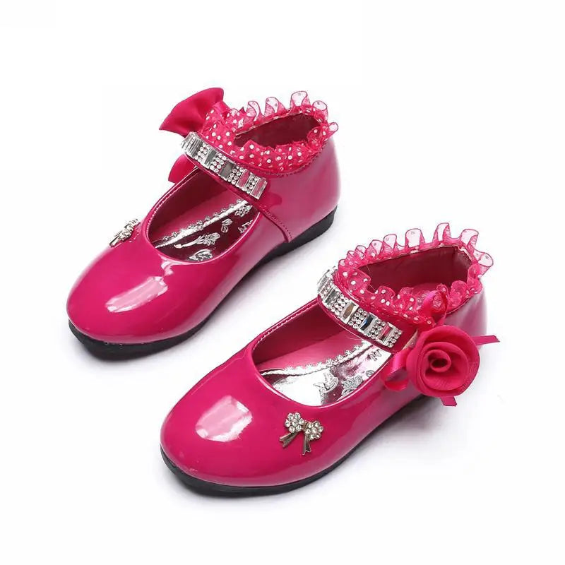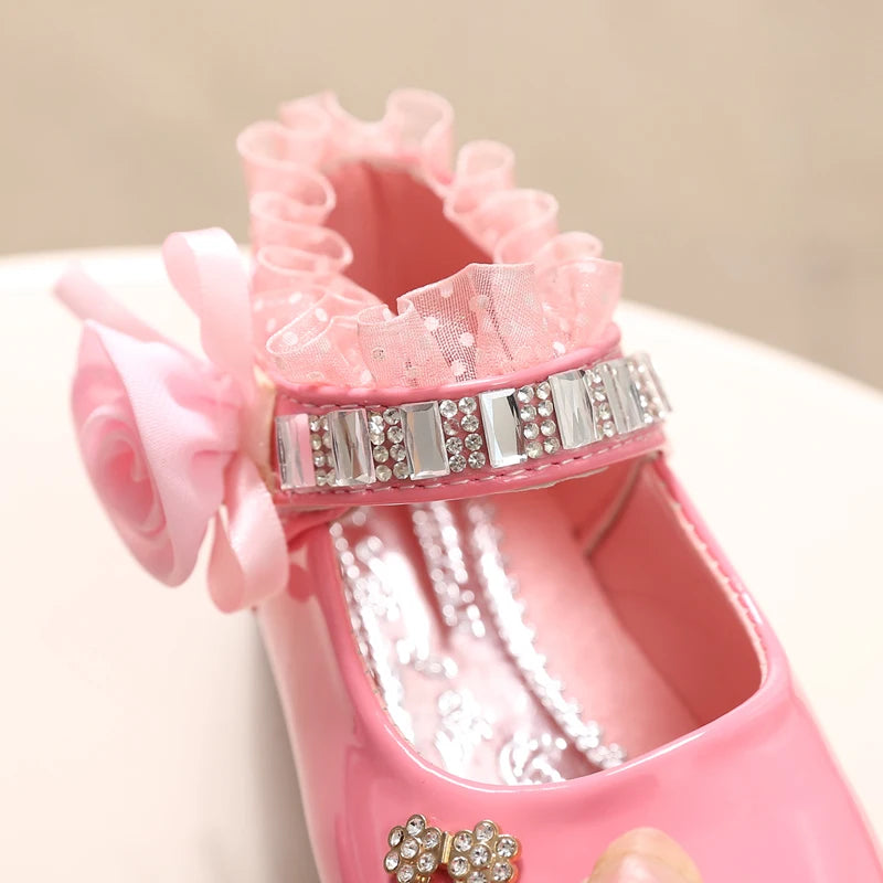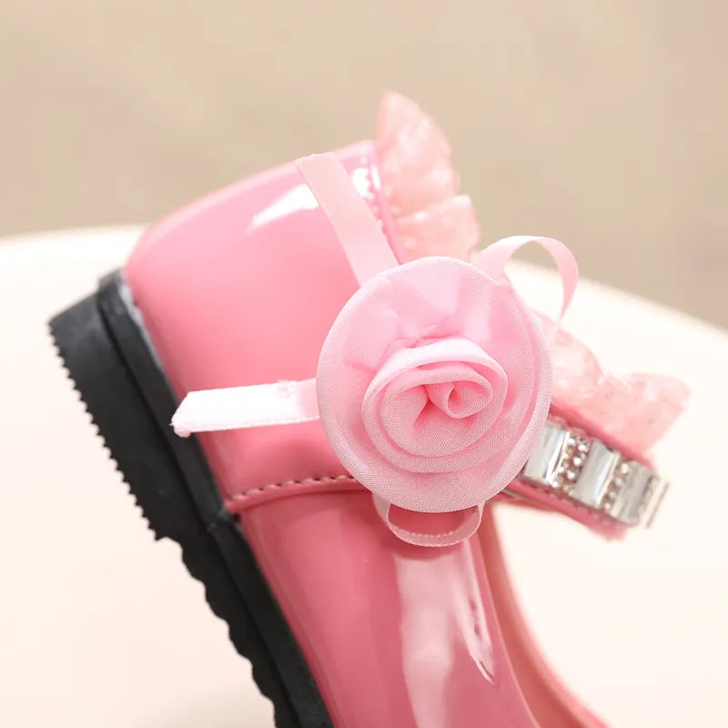 Our Cute Bowknot Rhinestone Flower Shoes are more than just footwear; they are a statement of elegance. The flat heel and durable materials ensure both comfort and style for your little one.