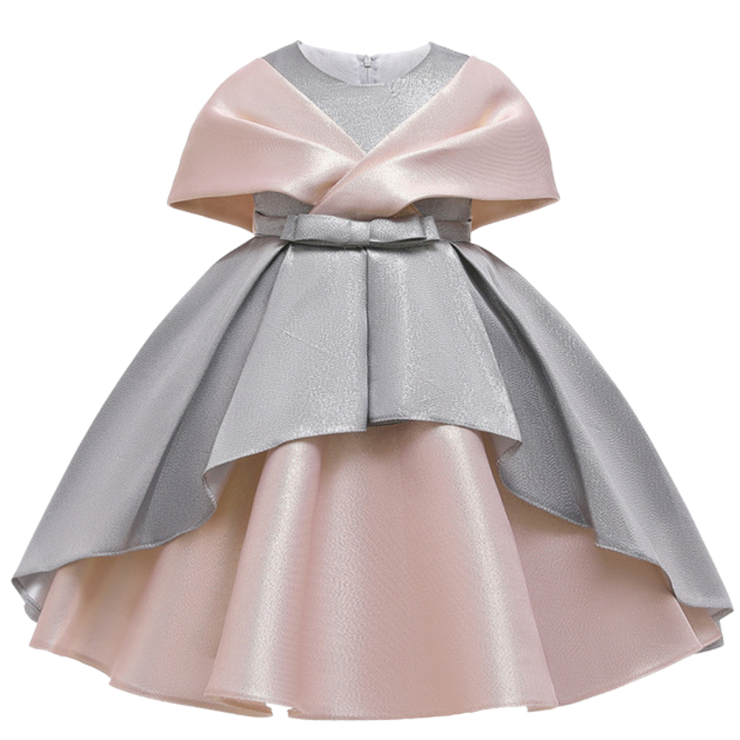 This Dual Toned Elegant Silk Cloth Princess Party Ball Gown is tailored into sophistication. A dress that is perfect for every little girl's princess formal fashion wear. Simple and elegant, that is what makes this dress stand out and makes your girl look classy in it.