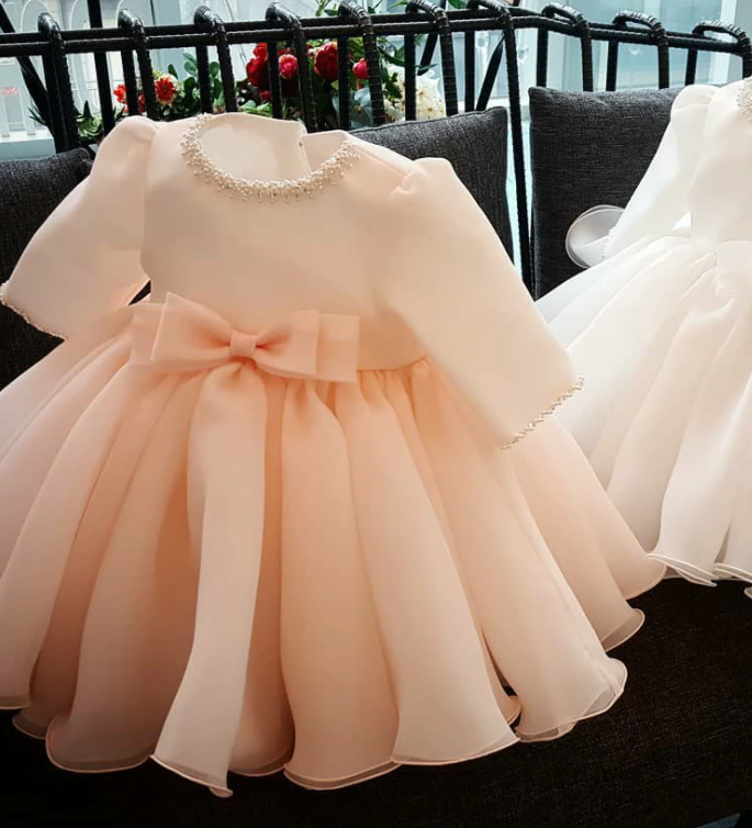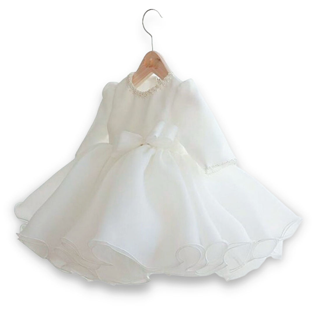Elegant Pearl Neckline Long Sleeve Wedding and Baptismal Princess Ball Gown