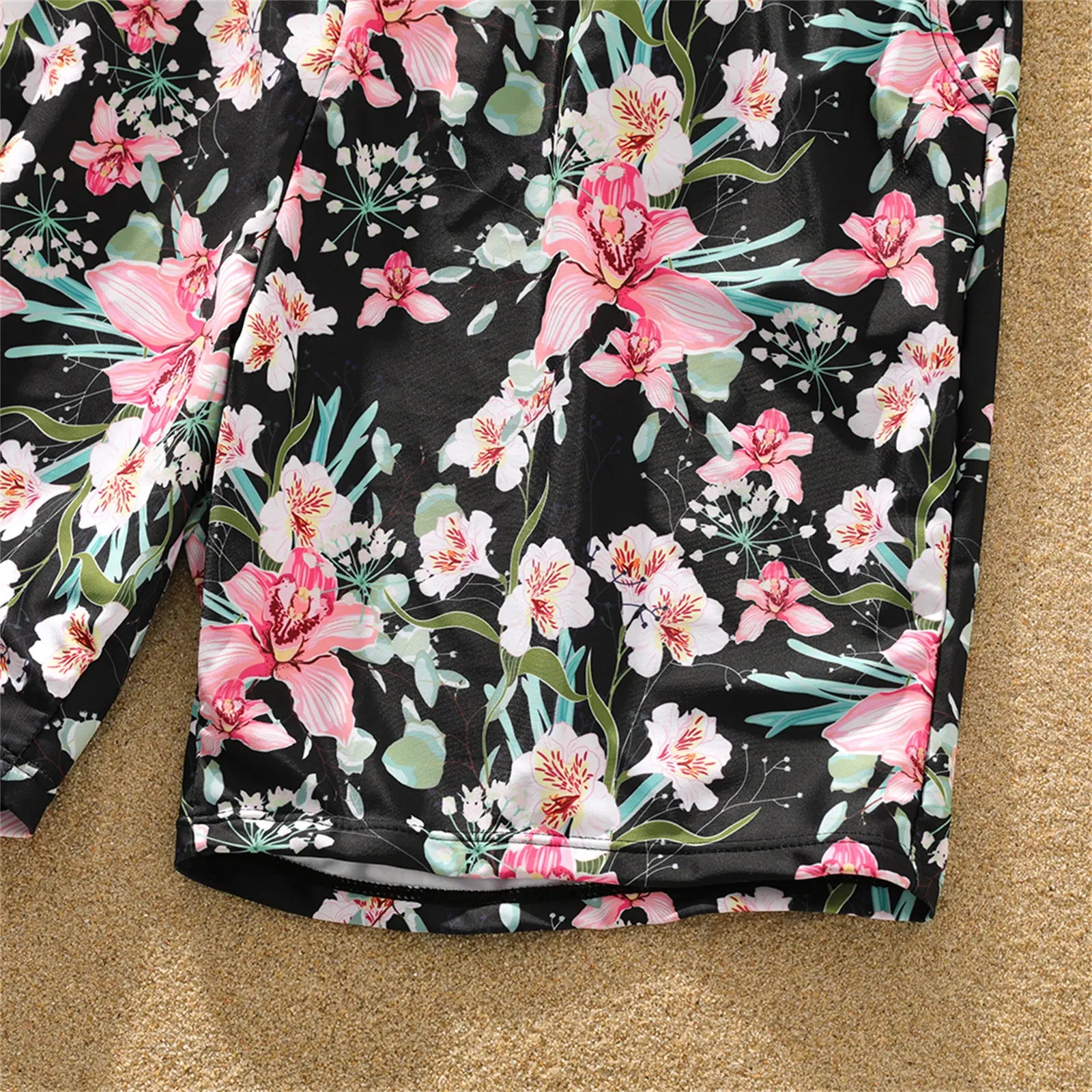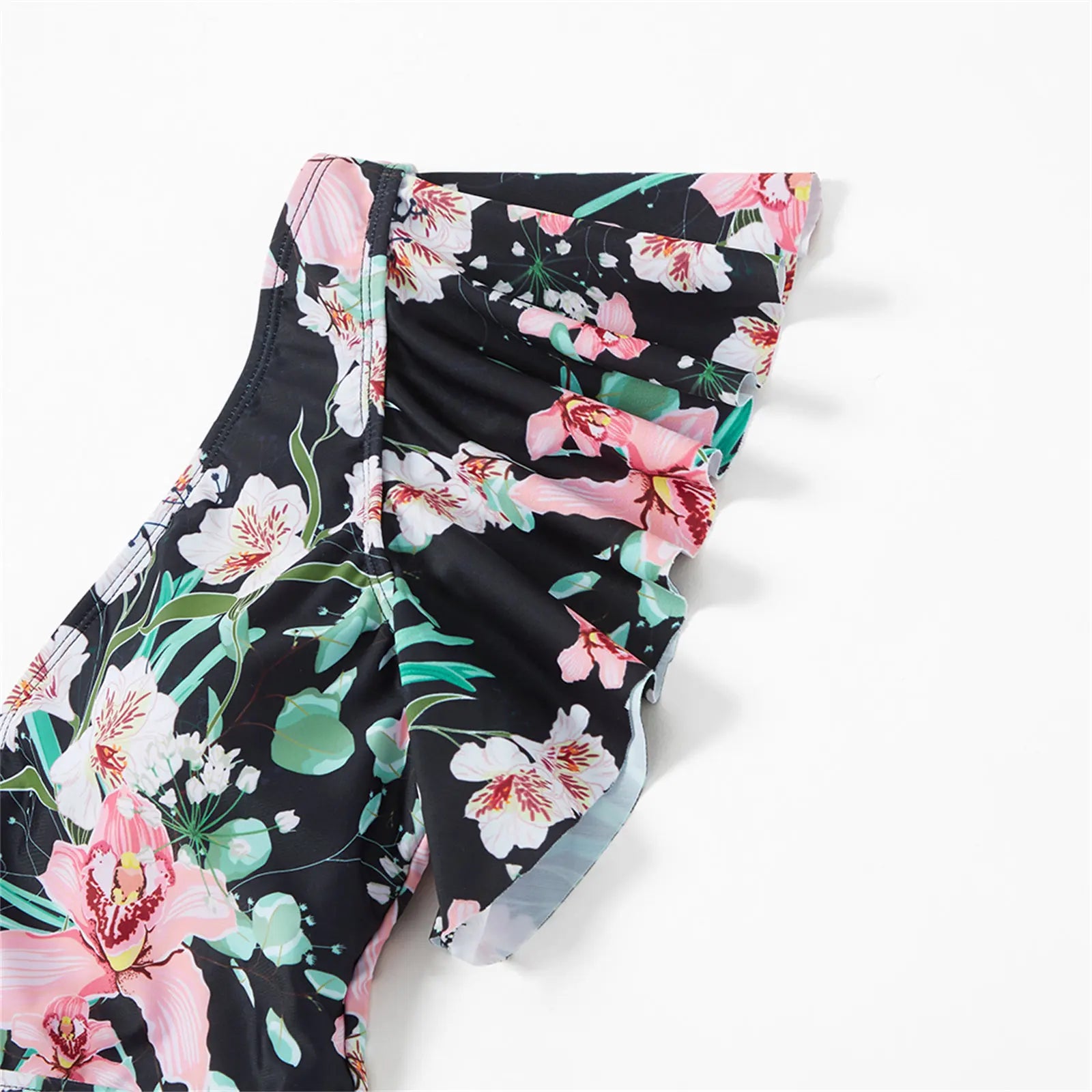 Versatile Use: Suitable for summer adventures, beach days, and family outings, our Family Matching Floral Swim Trunks and Ruffle-Sleeve Swimsuit are the perfect companions for your next warm-weather escapade.