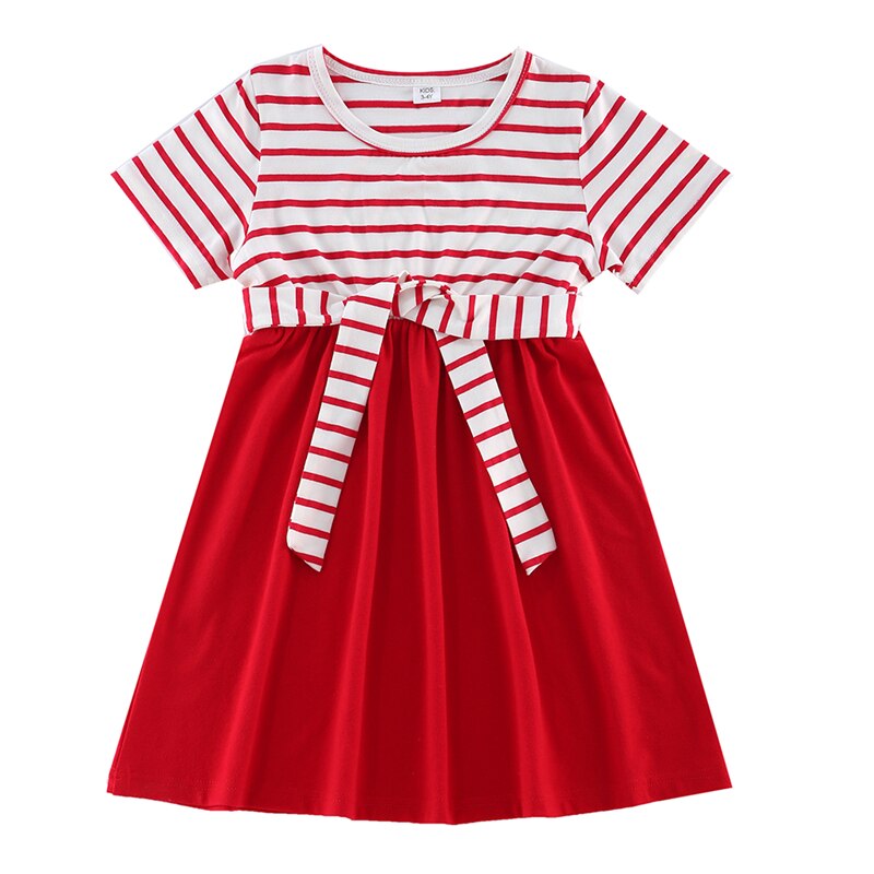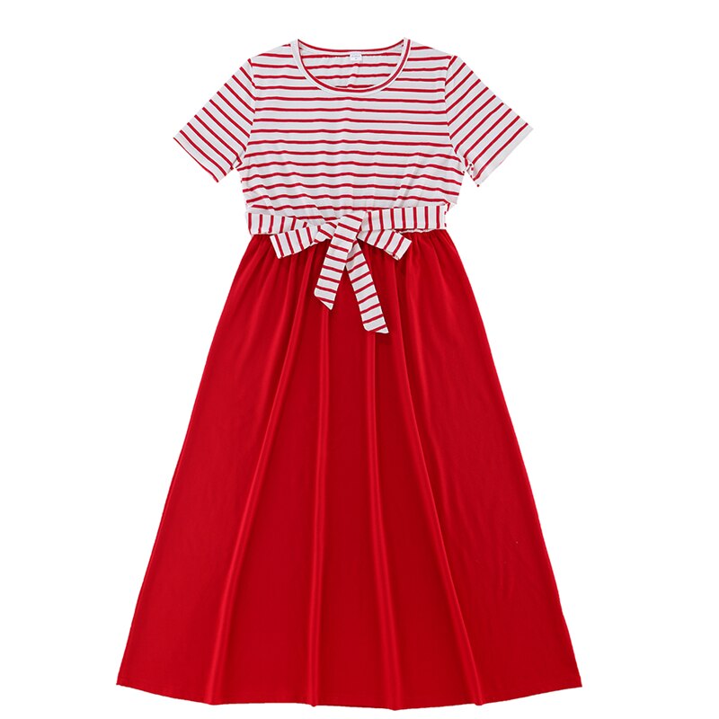 Family Matching Outfits Striped Dress with Bow Button T-Shirt Casual Family Look