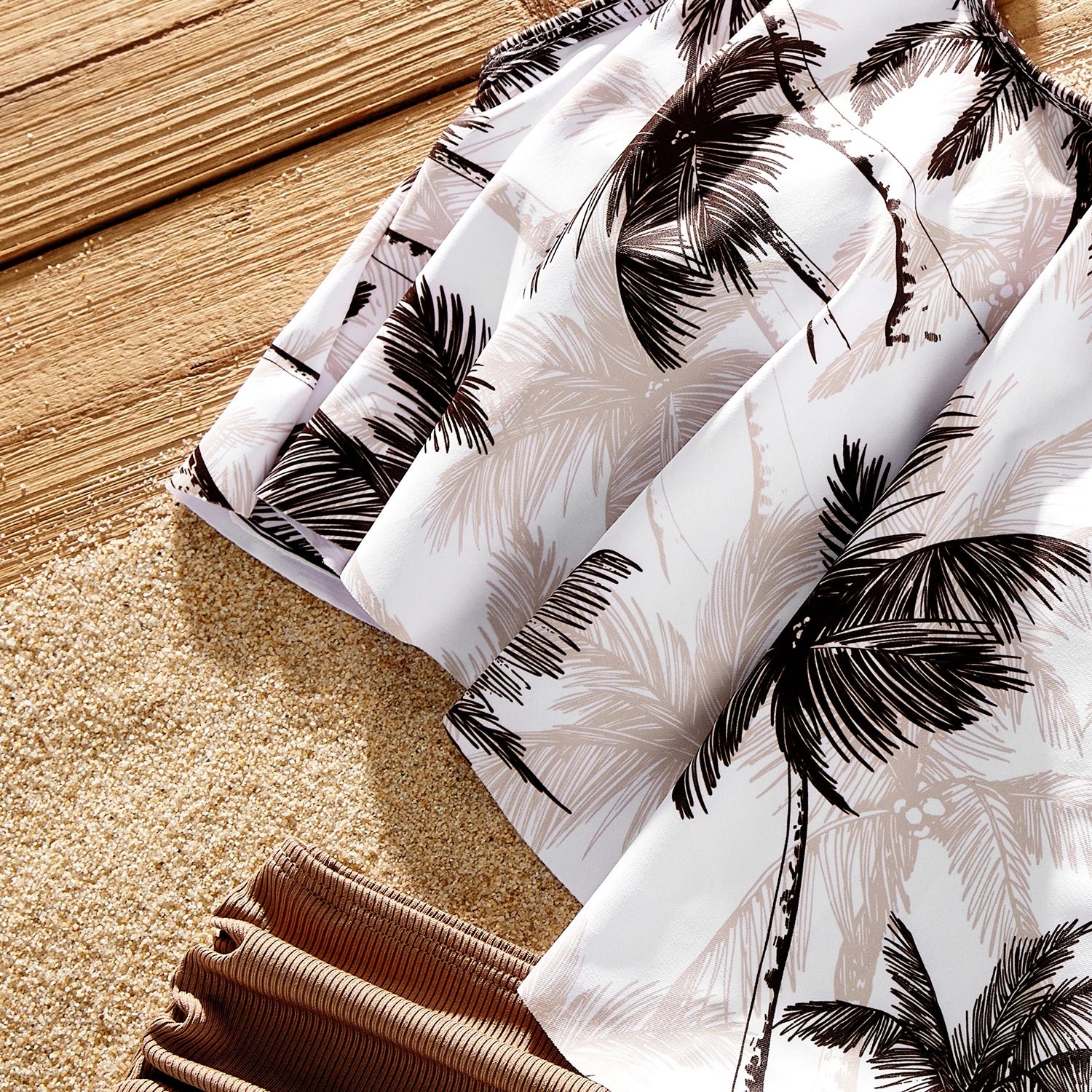 Perfect for Every Occasion: Whether it's a day at the beach, a tropical vacation, or any casual occasion, this family swimsuit set with a coconut tree print is your go-to choice for style and comfort.