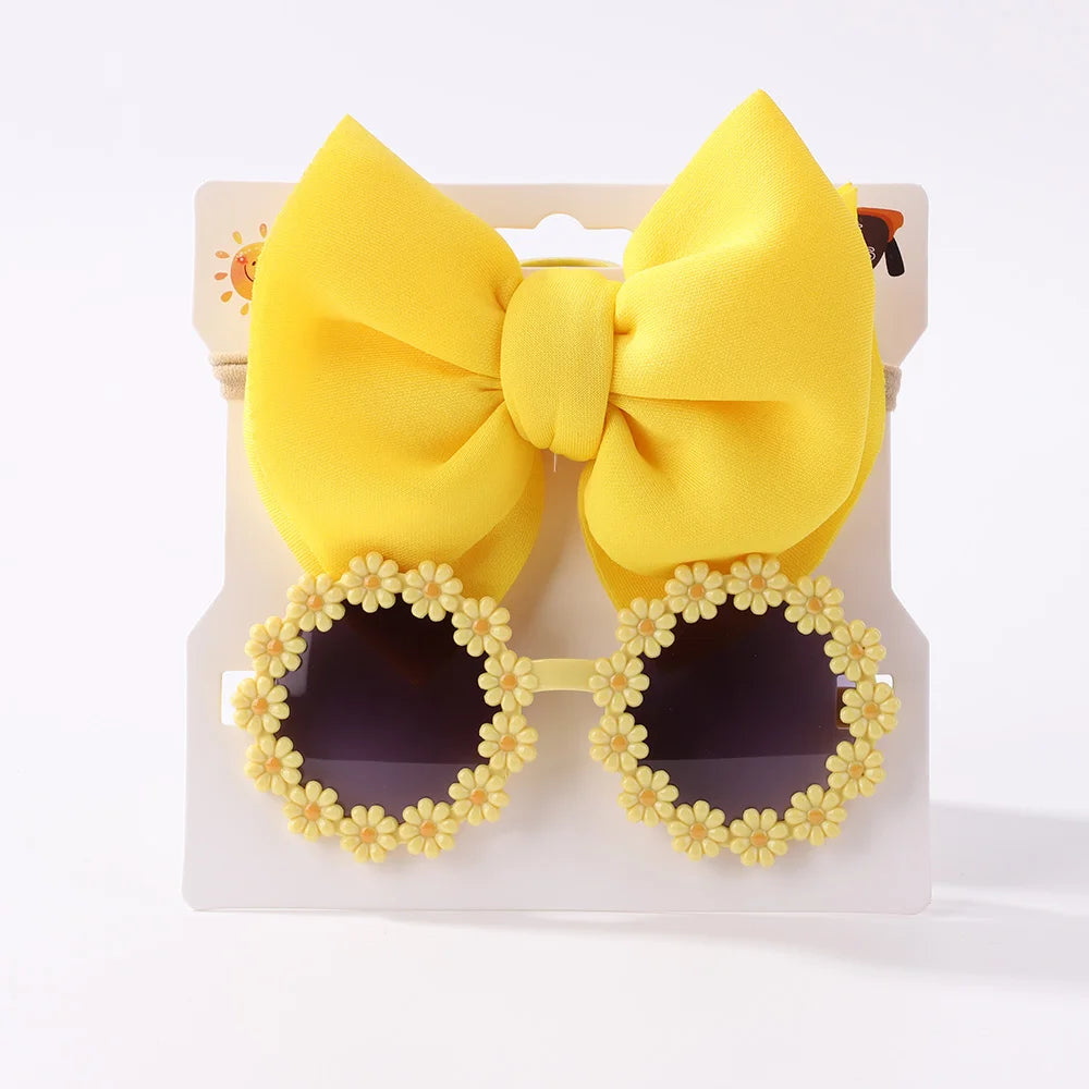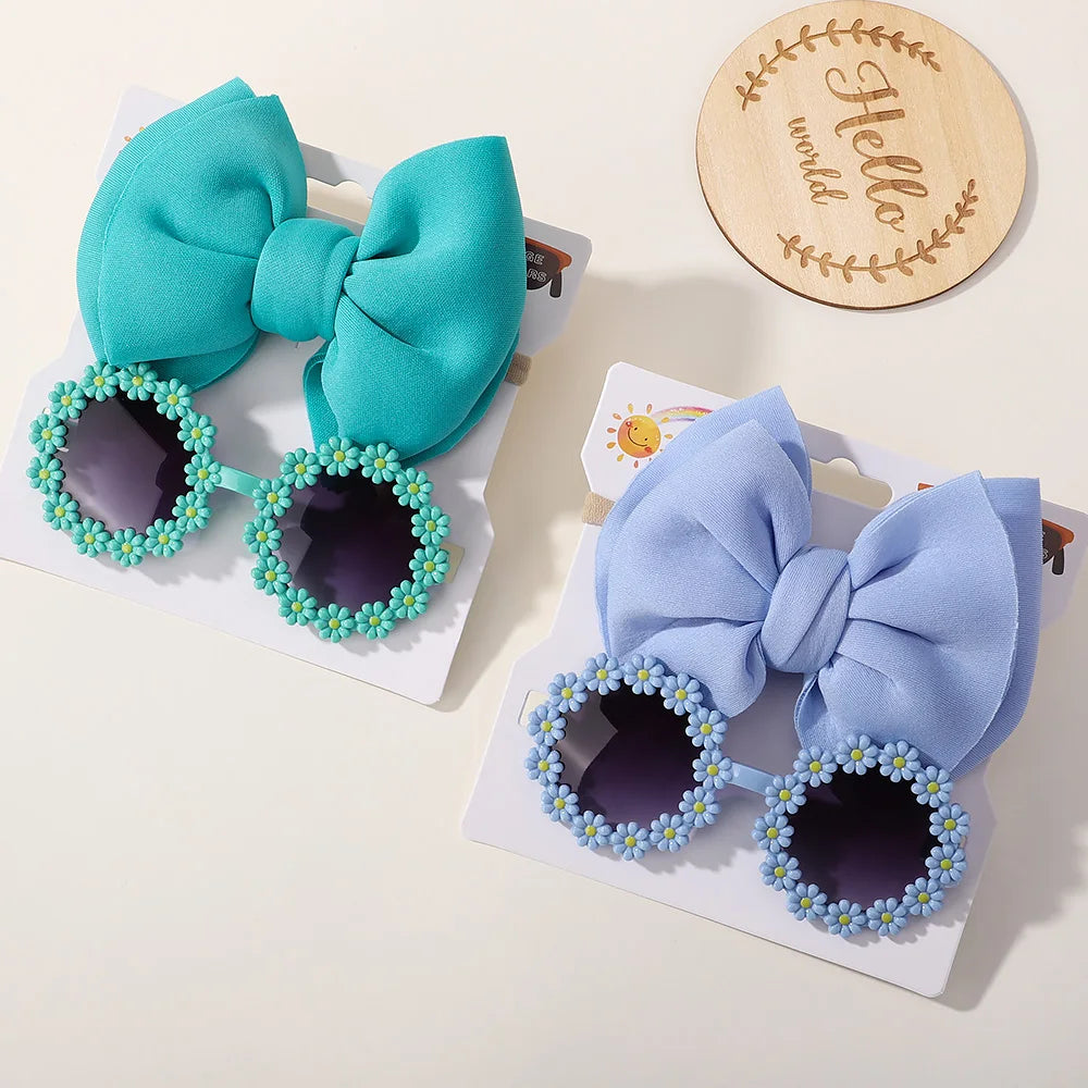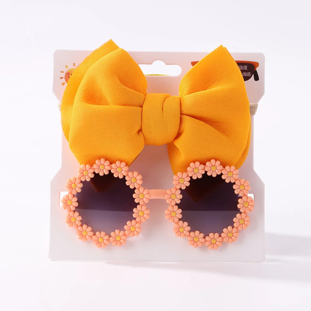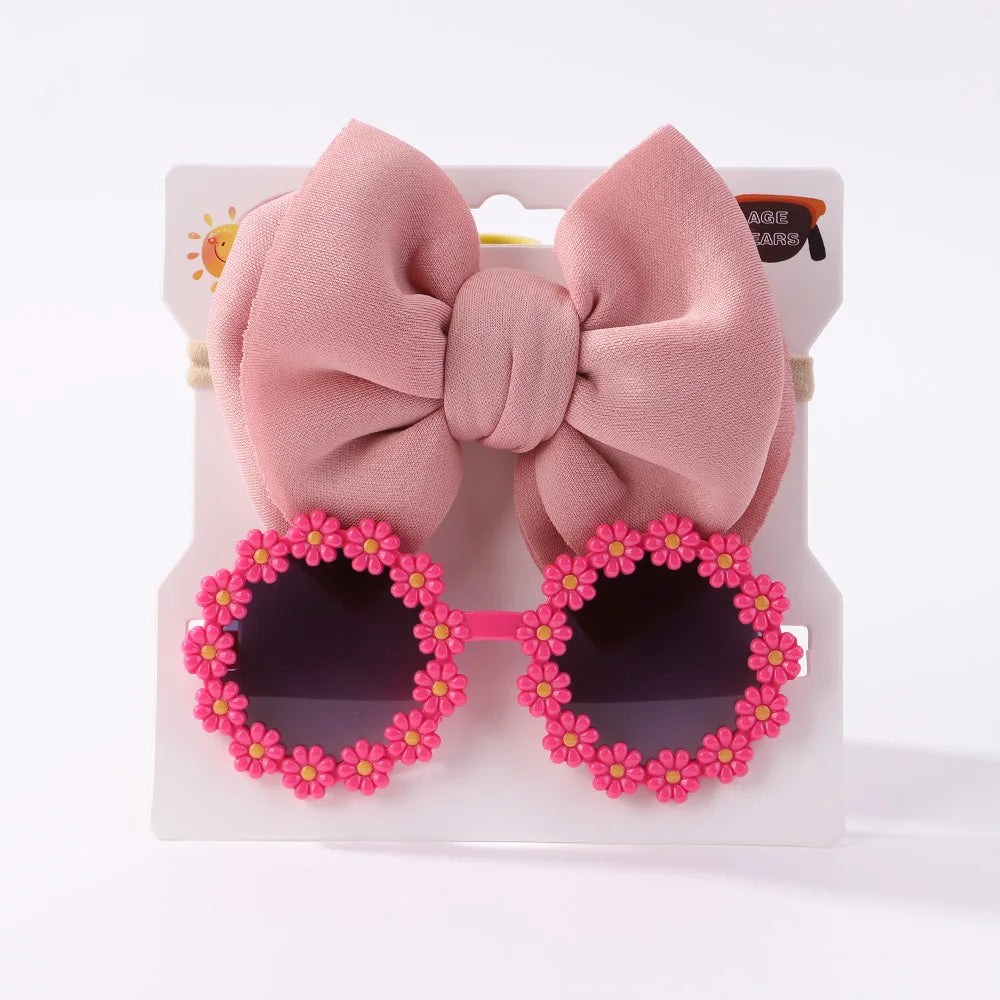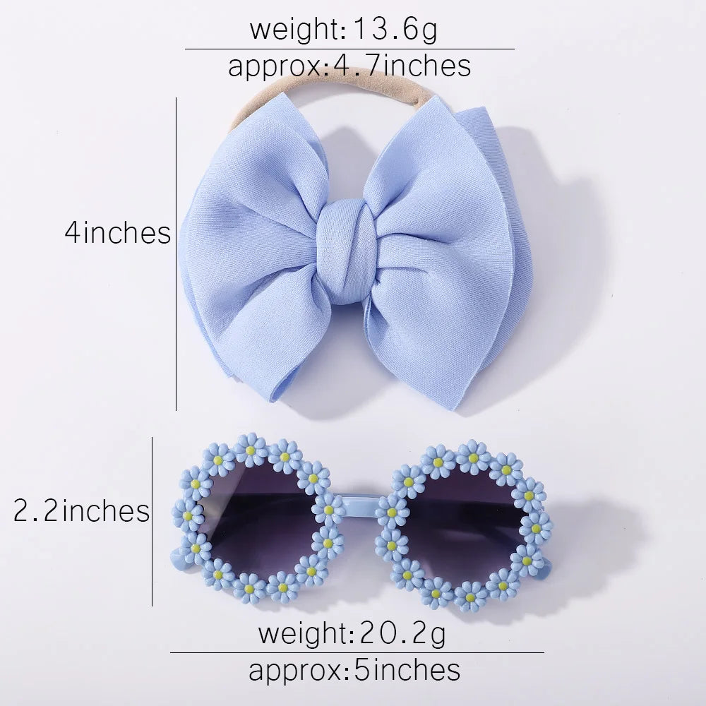 Make your little girl's summer outings more stylish and enjoyable with our adorable set. Designed with sun protection in mind, this set features a pair of fashionable sunglasses and a matching hair band, perfect for beach days and outdoor adventures.