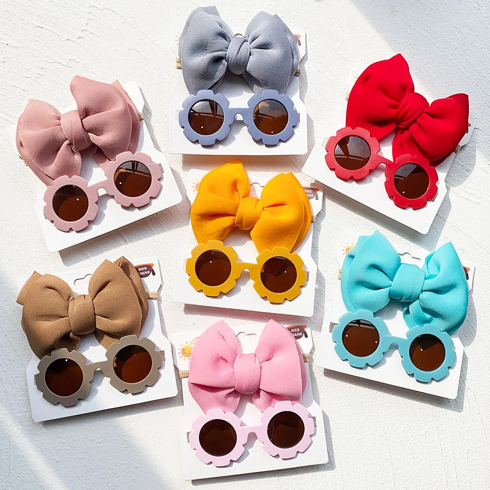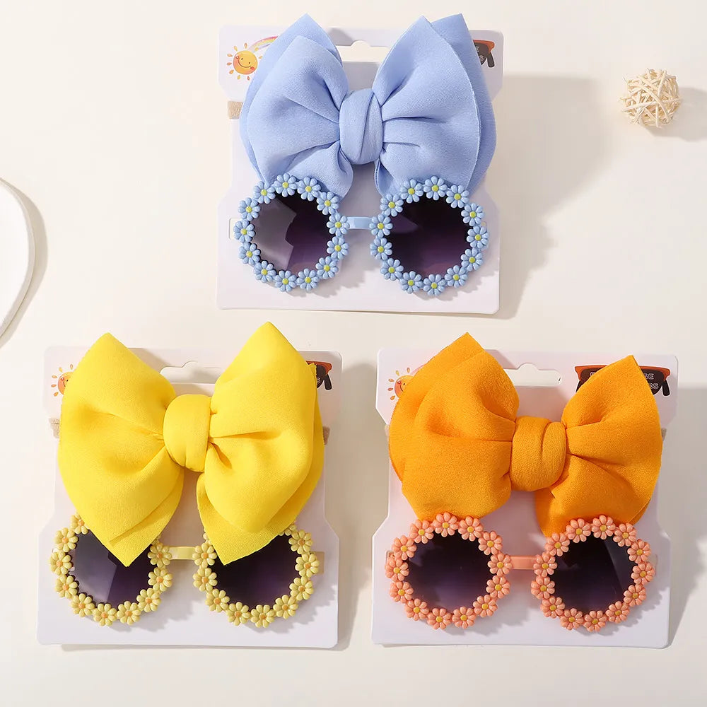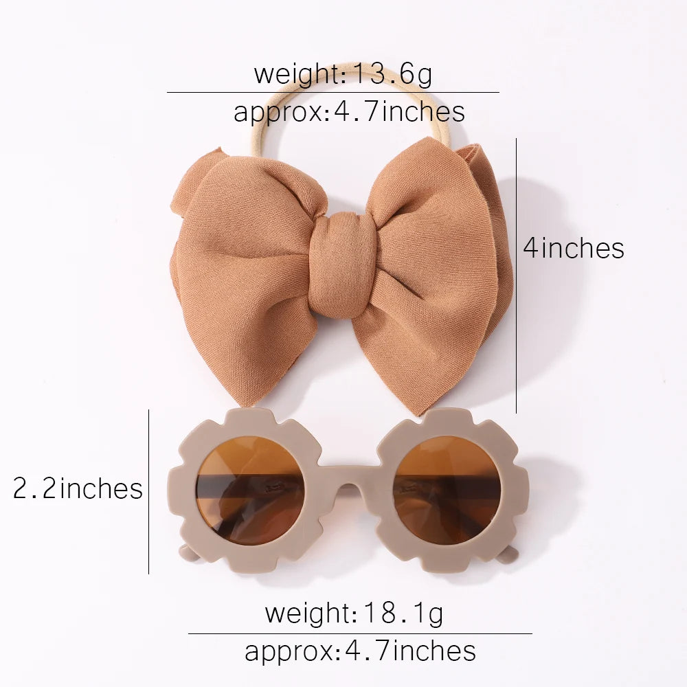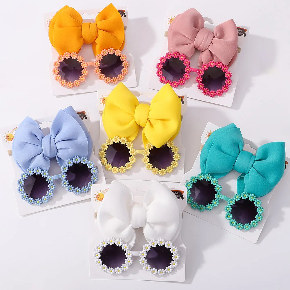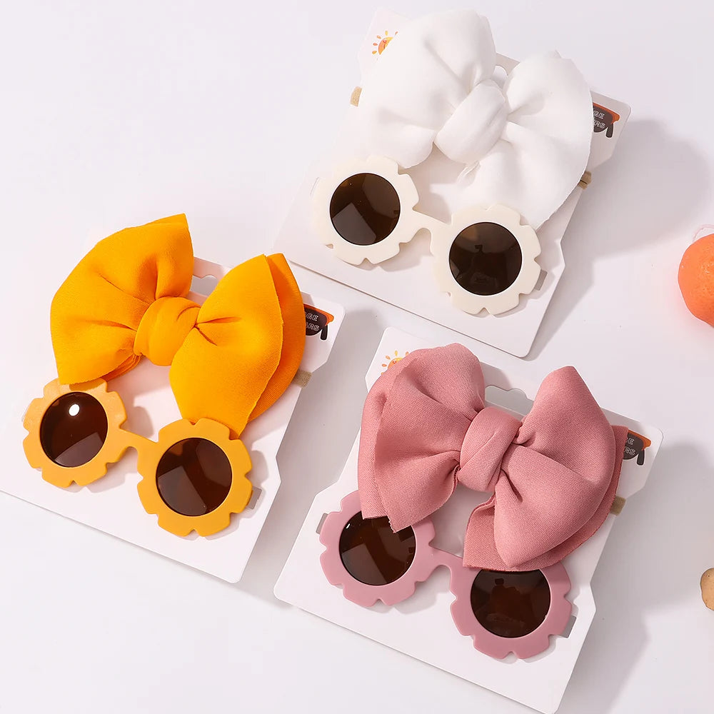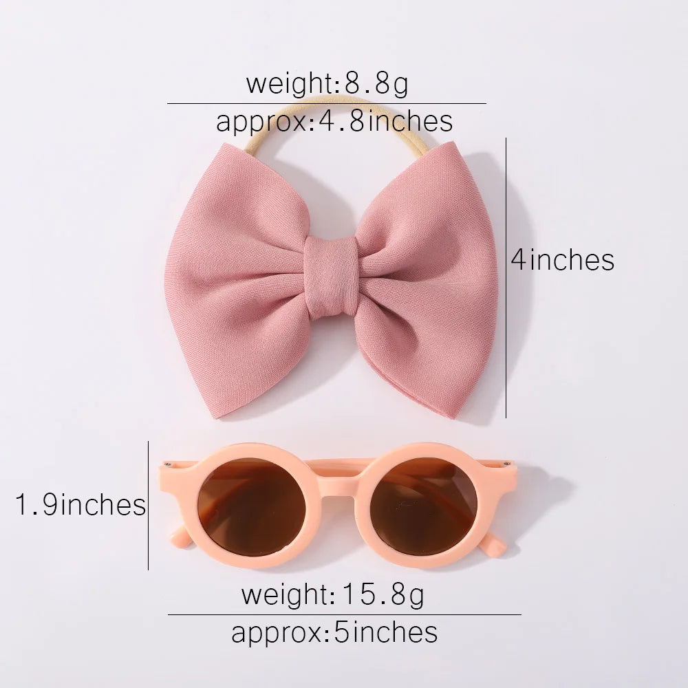 Make your little girl's summer outings more stylish and enjoyable with our adorable set. Designed with sun protection in mind, this set features a pair of fashionable sunglasses and a matching hair band, perfect for beach days and outdoor adventures.