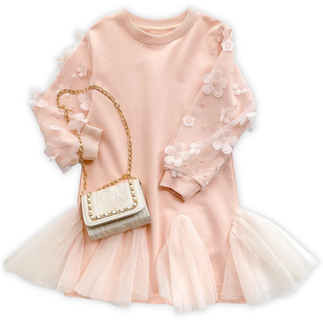 Floral Patch Lace Design Girls Long Sleeves Fashion Dress