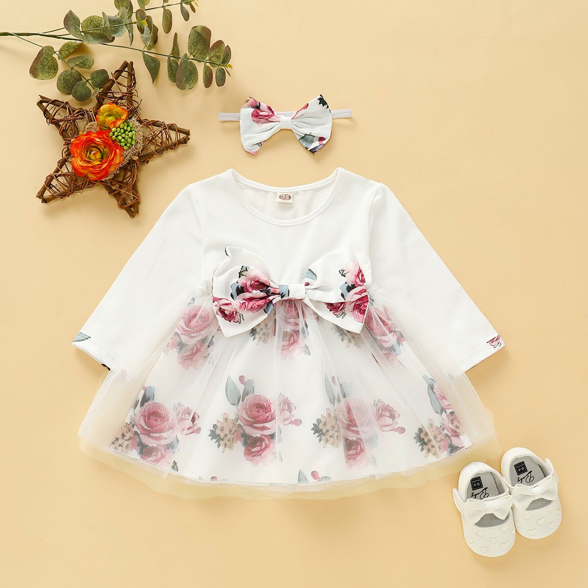 Floral Print Butterfly Long Sleeves Baby Girl Dress