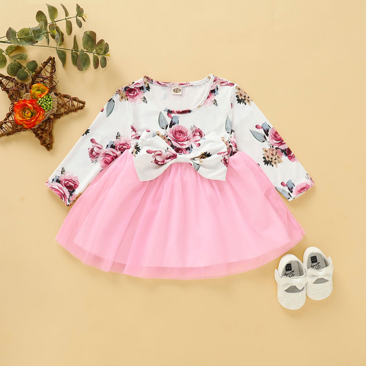 This Floral Print Butterfly Long Sleeves Baby Girl Dress is made of high-quality cotton fabric that is soft, breathable, and comfortable for babies. The vibrant colors will make your little one look so pretty in it. Designed with a cute pattern, it features long sleeves, a round neckline, and an elastic waist to give your little girl an excellent fit. A great gift for your daughter!