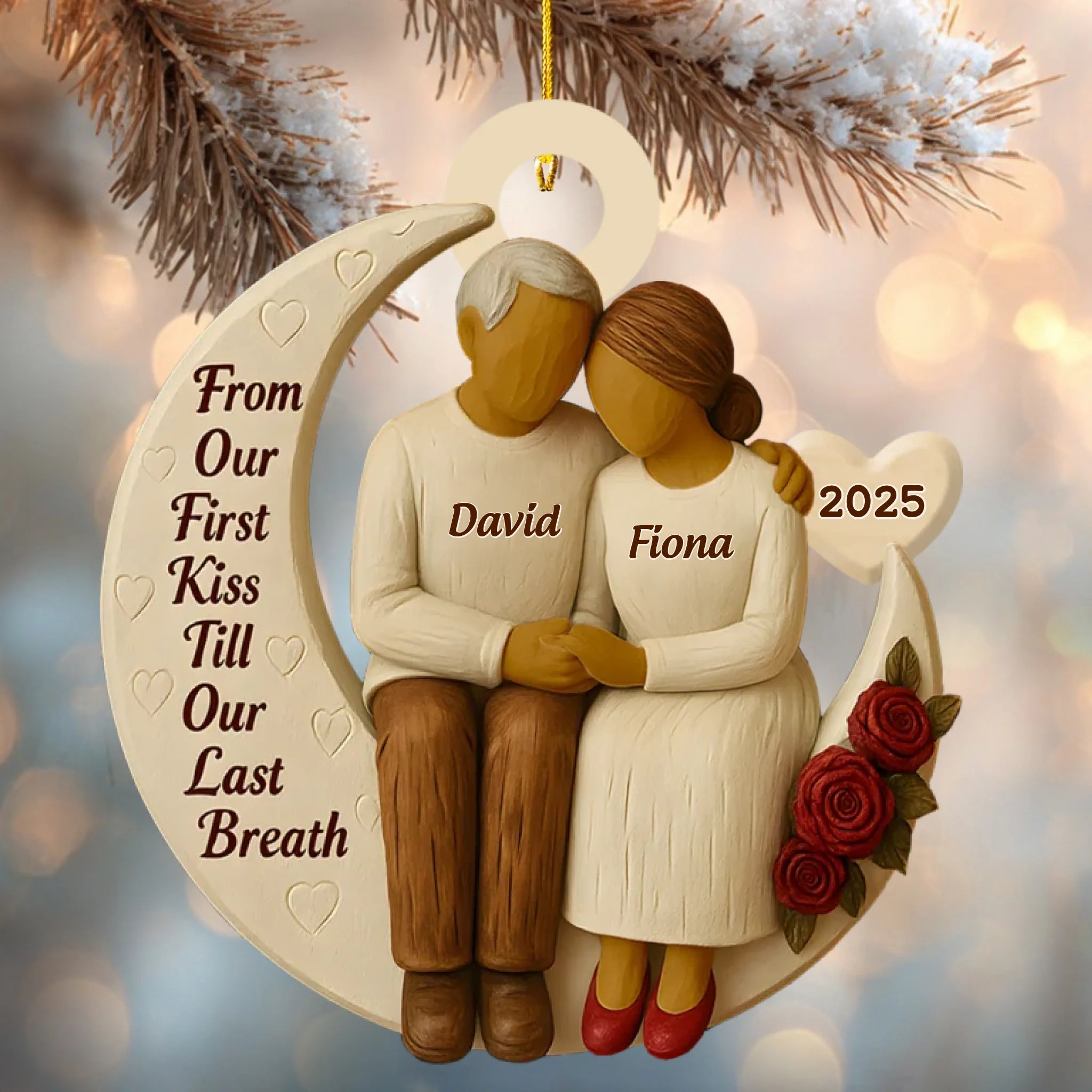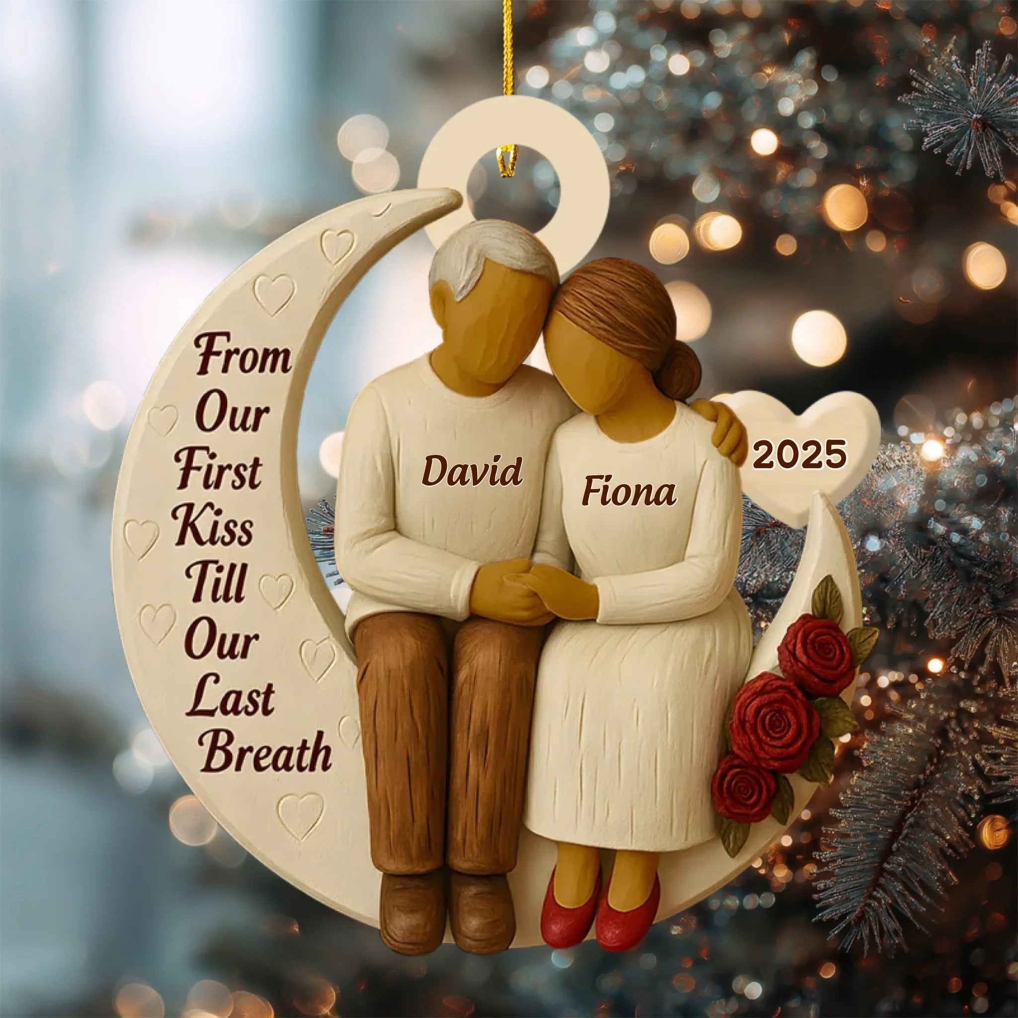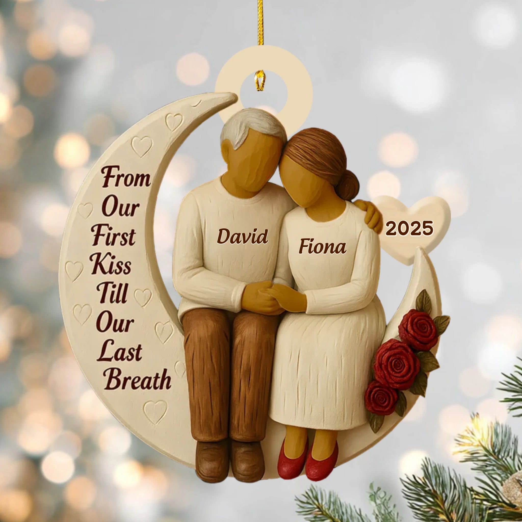 From Our First Kiss Till Our Last Breath – Personalized Wooden Couple Ornament – Romantic Gift for Couples, Wedding, or Anniversary