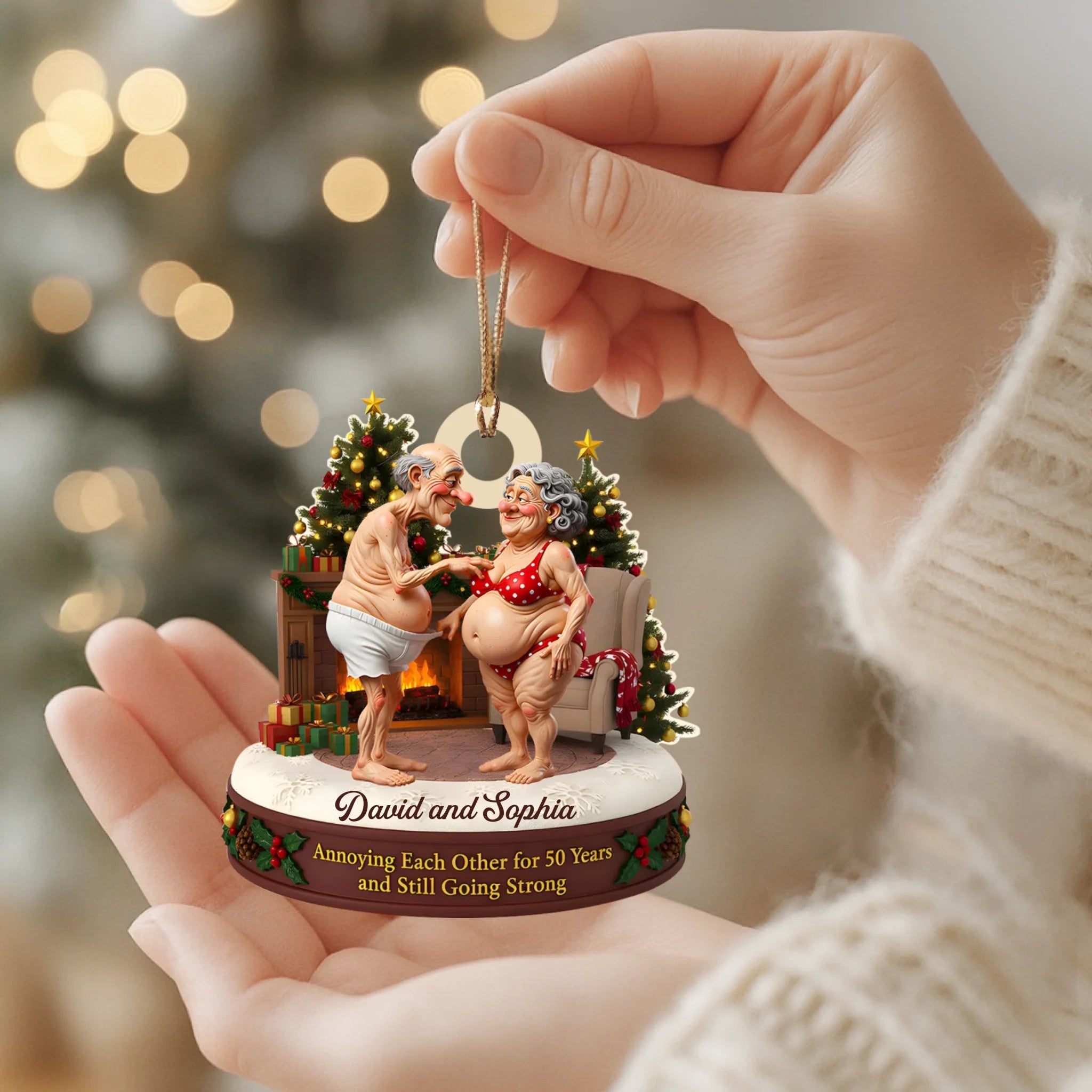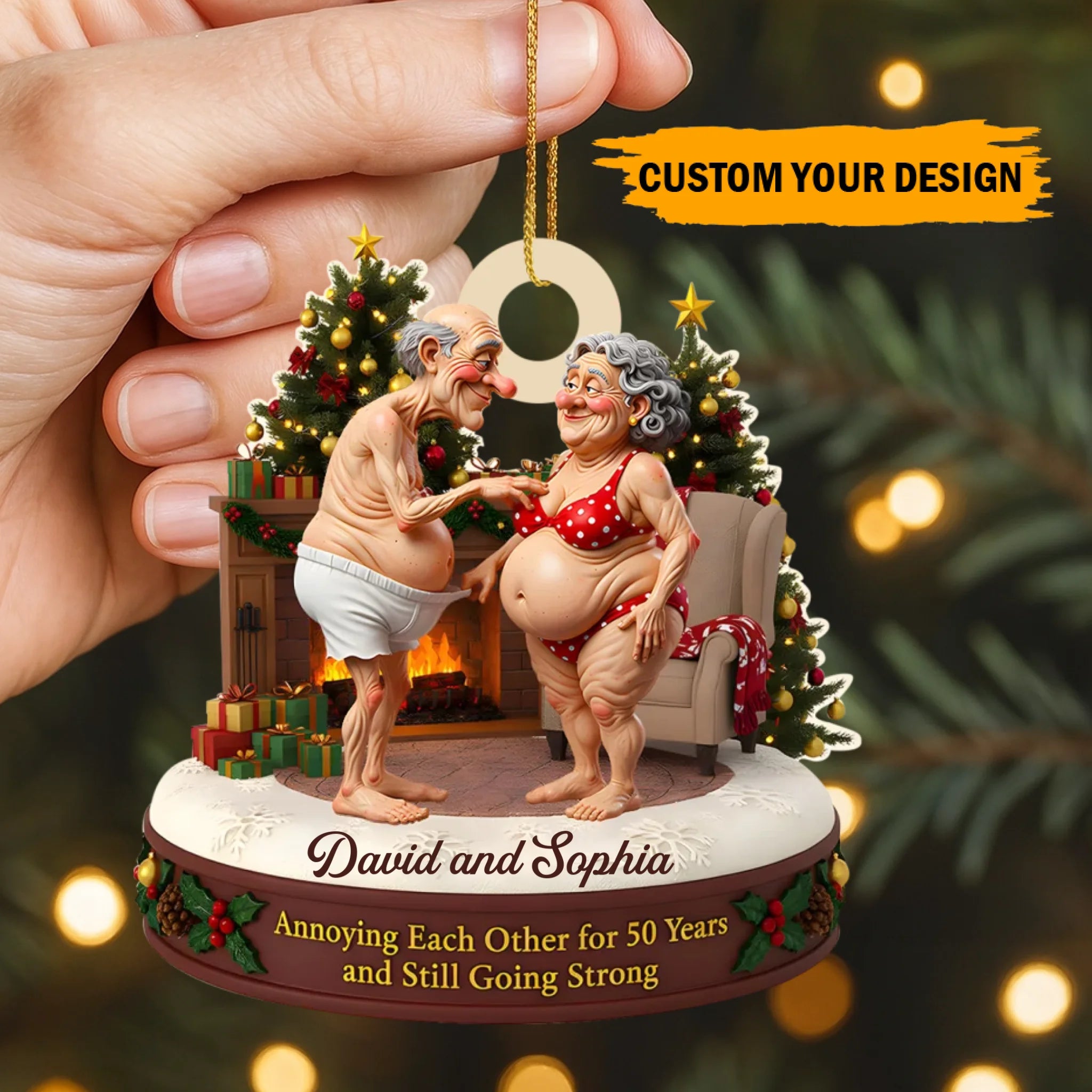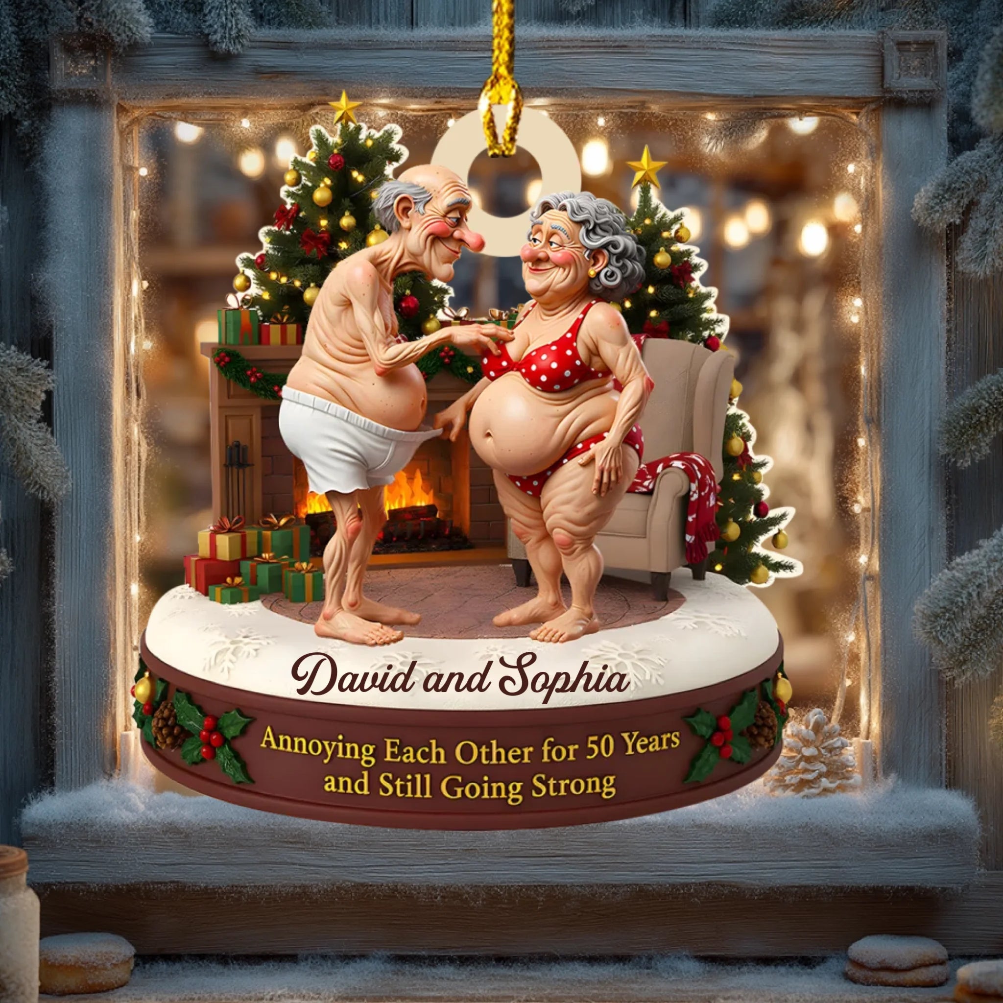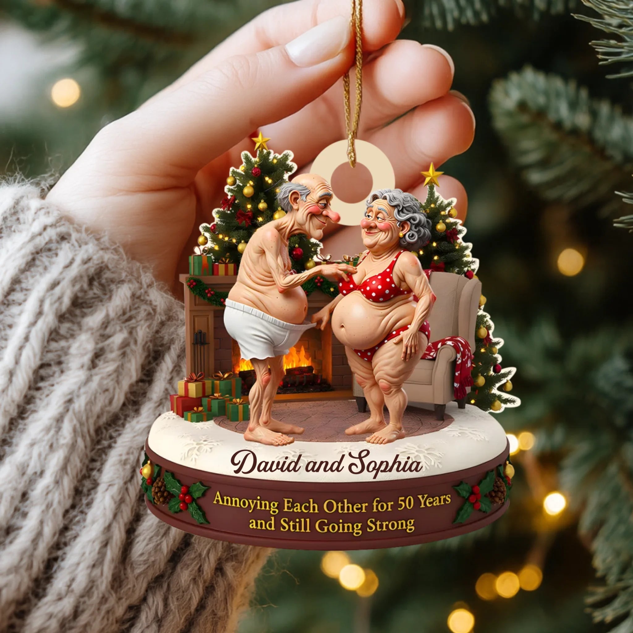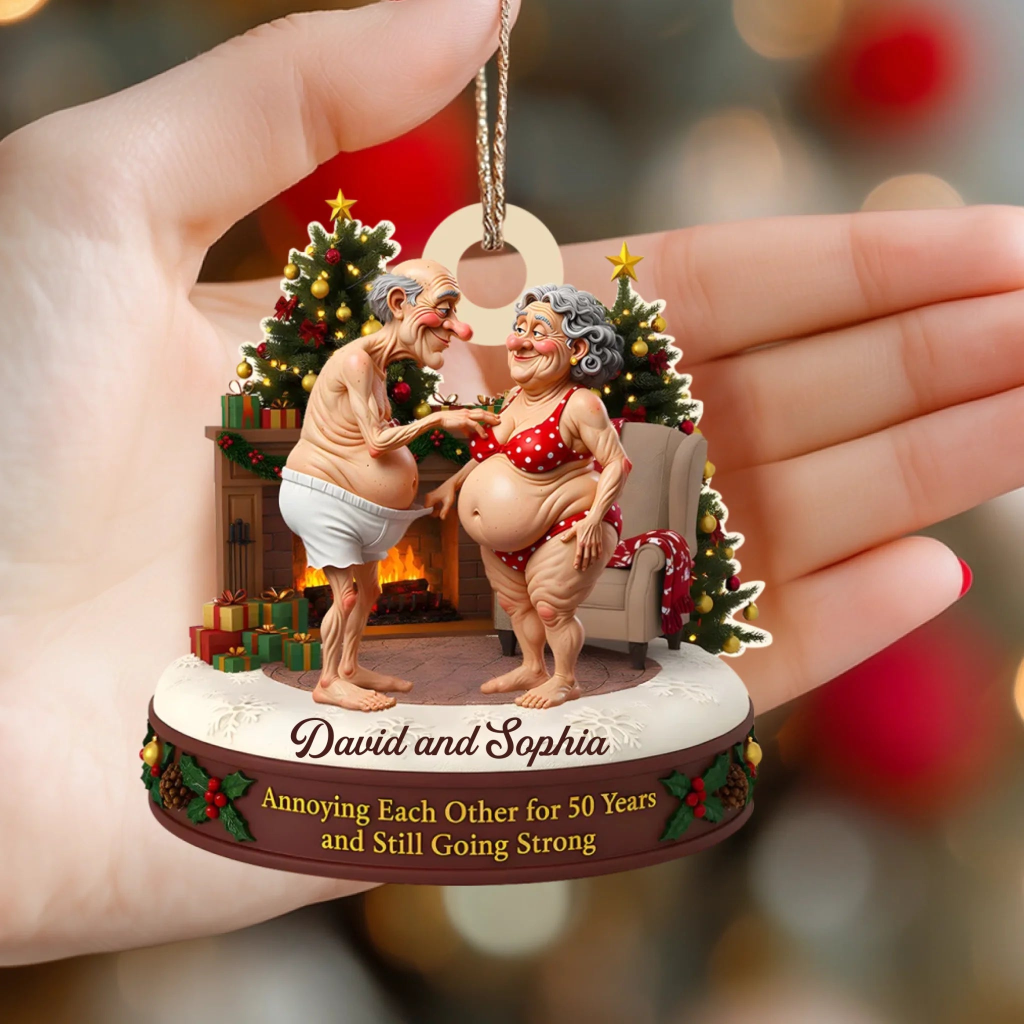 Celebrate love, laughter, and a lifetime of playful teasing with this Personalized Funny Couple Ornament!