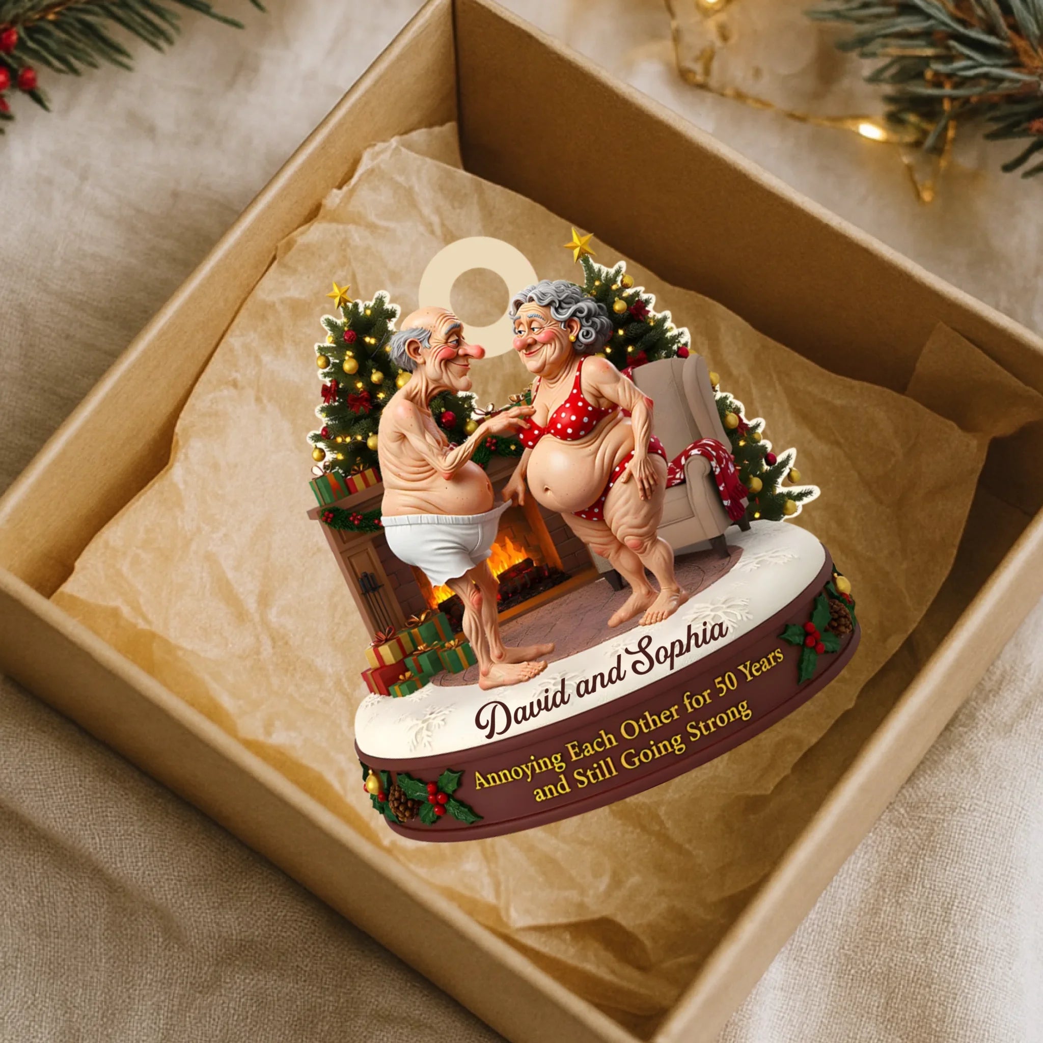 Personalize it with your couple’s names and character skin tones to make it a truly unique keepsake that perfectly reflects your relationship’s fun and loving spirit. Whether it’s a Christmas gift, anniversary surprise, or just a reminder of your silly bond, this ornament will bring a smile every time you see it.