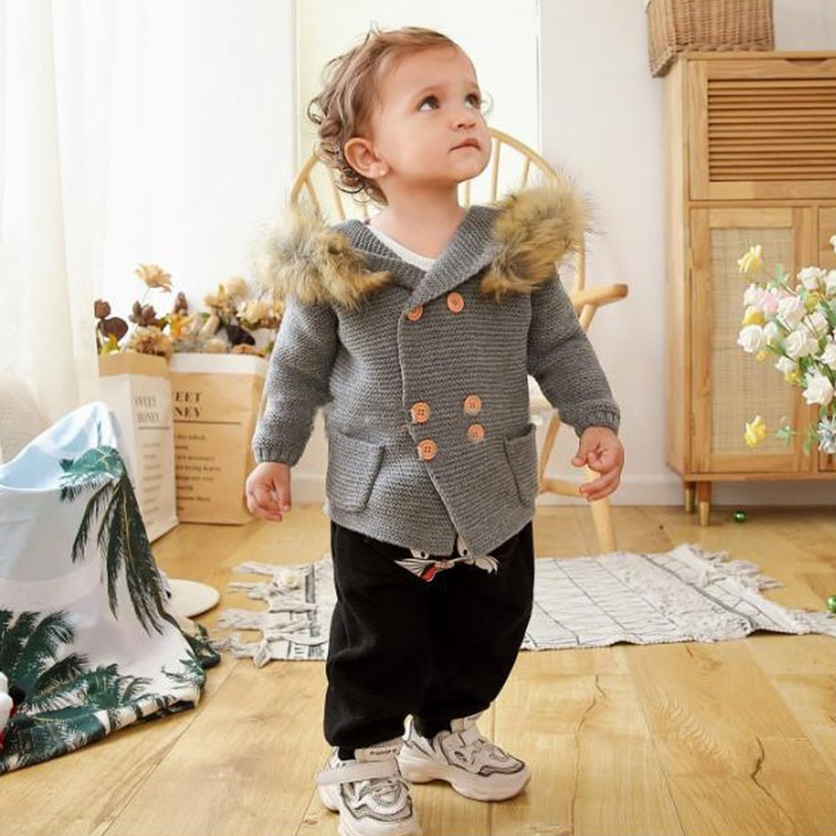 Introducing our ‘Furry Hooded Knitted Sweater’ that is an adorable winter wear for kids with a Furry Hood and cute 3D ears similar to a lion. Your little babies will actually look like lovable lion cubs in this charming Sweater. A perfect Christmas Gift for little ones.