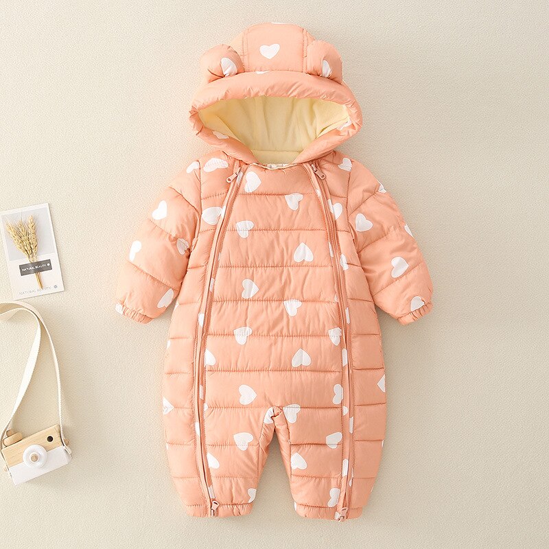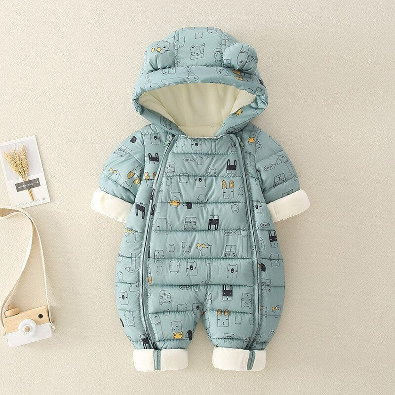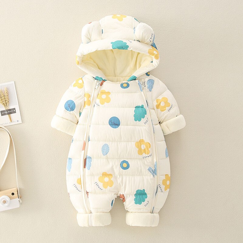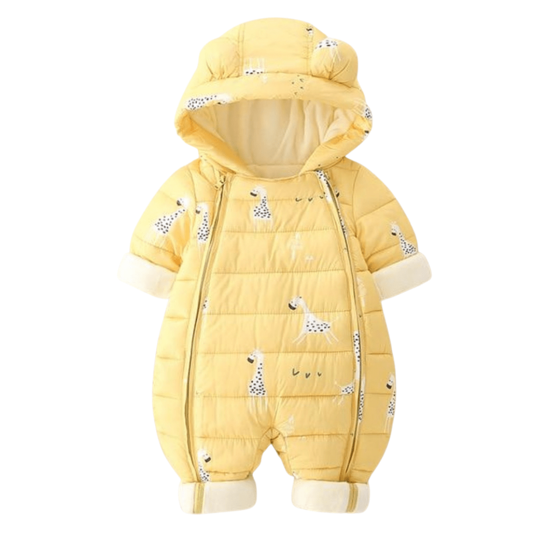 Giraffe Toon Pattern Infant Hooded Parka Jumpsuit