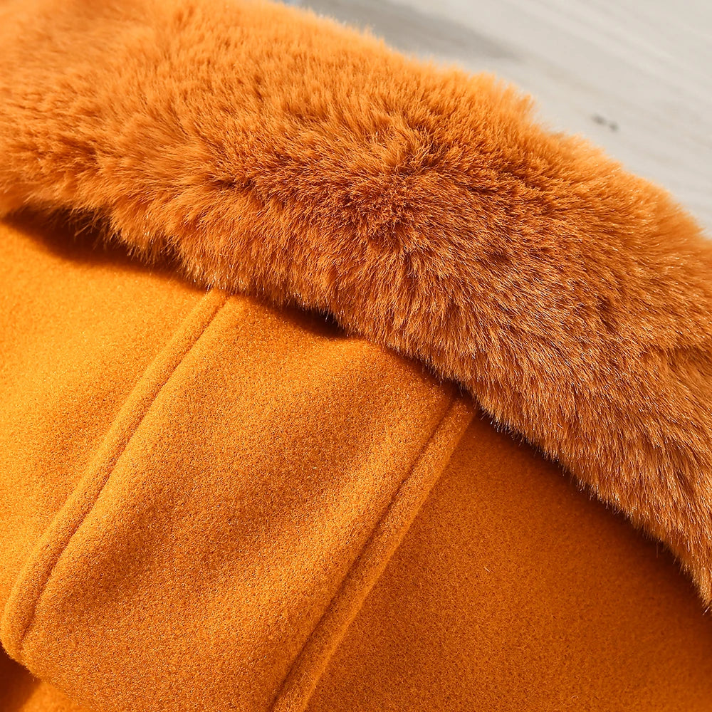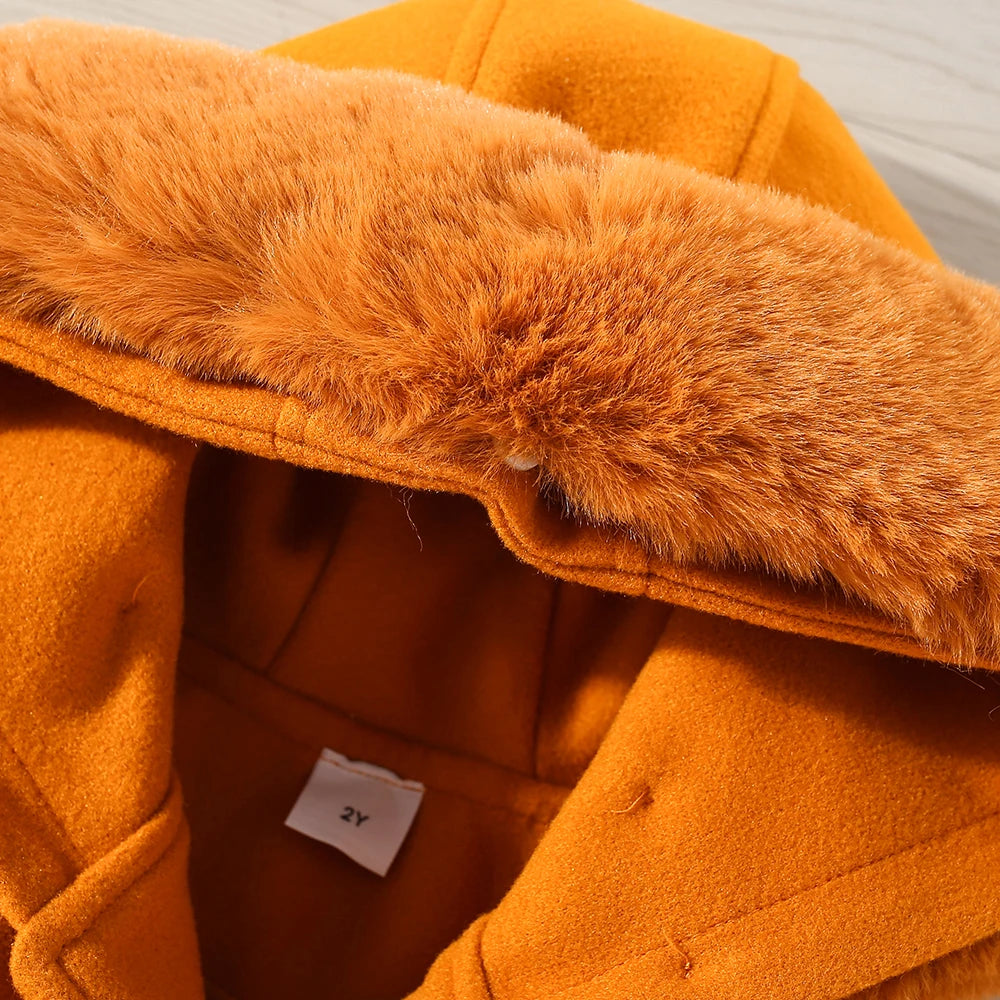 Girl's Woolen Coat with Big Wool Collar - Cute & Cozy
