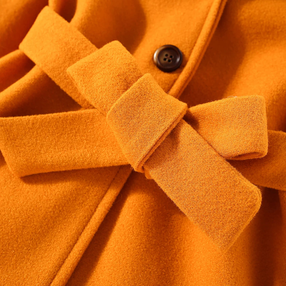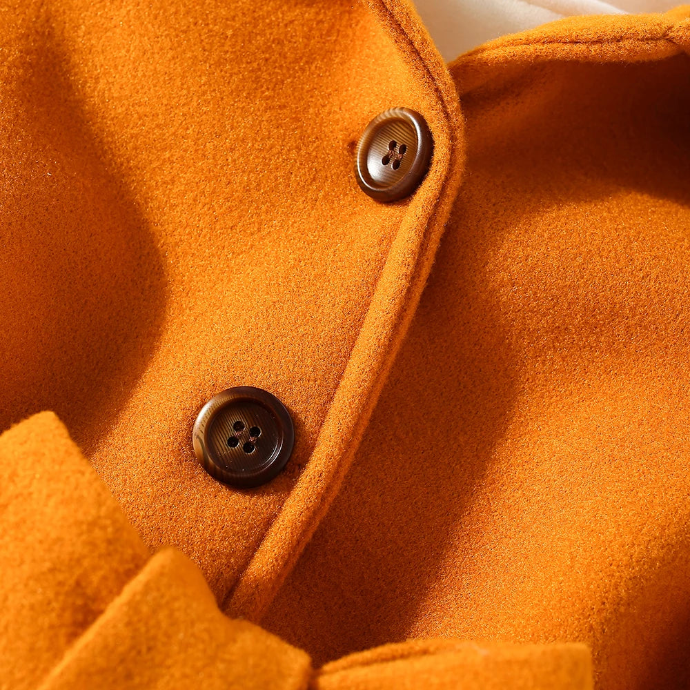 Embrace the enchanting combination of style and comfort with our Girls' Woolen Coat. This exquisite piece is designed in a European and American style, ensuring your little fashionista stands out.