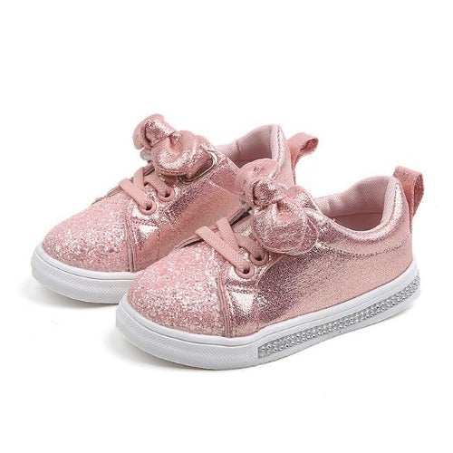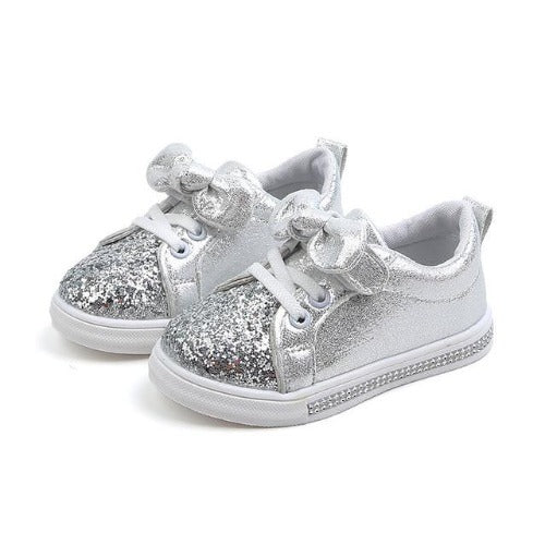 Not all that glitters are expensive! And so are these Glittered Bowknot Sneakers that shine and make those little feet walk with comfort and style. Give your baby the best first walker fashion sneakers to match a good-looking outfit for that adorable overall look!