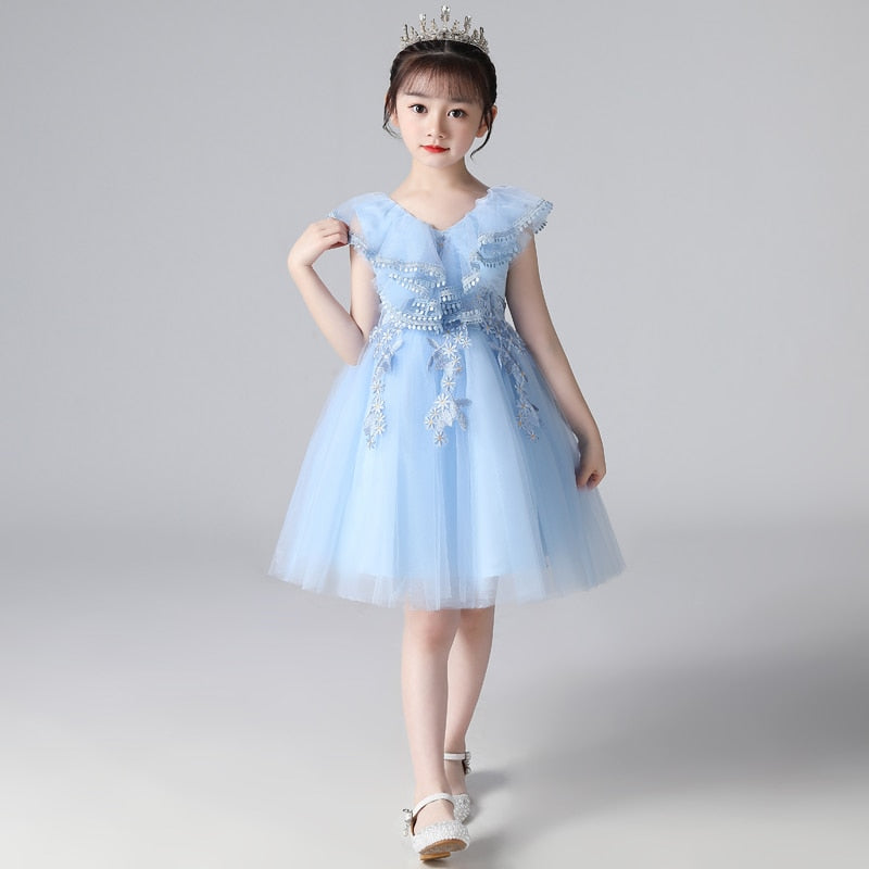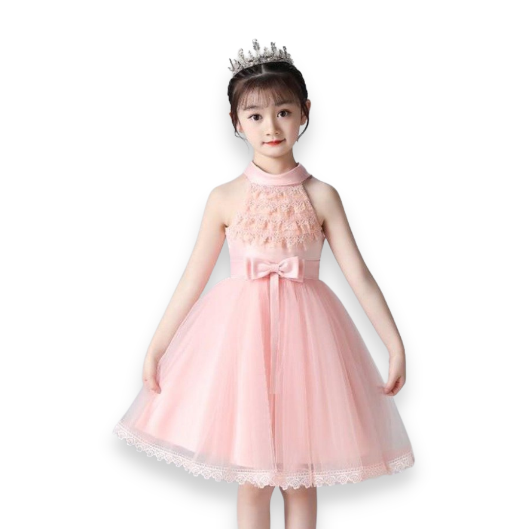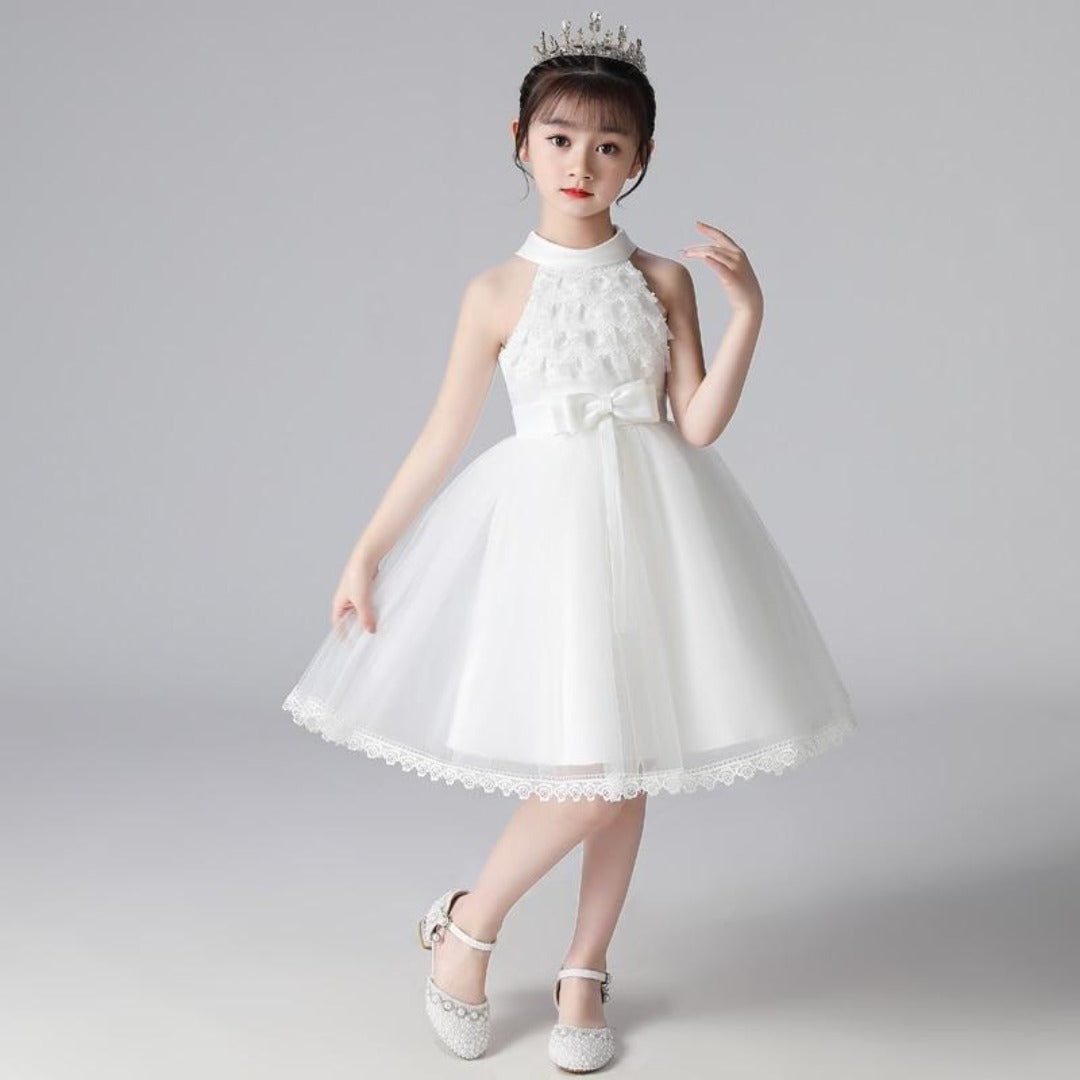 This Halter Lapel Lace Flower Girl Princess Dress is for girls. A gorgeous dress for your little princess on her special day. This dress is so adorable and can be worn for wedding parties to other occasions.