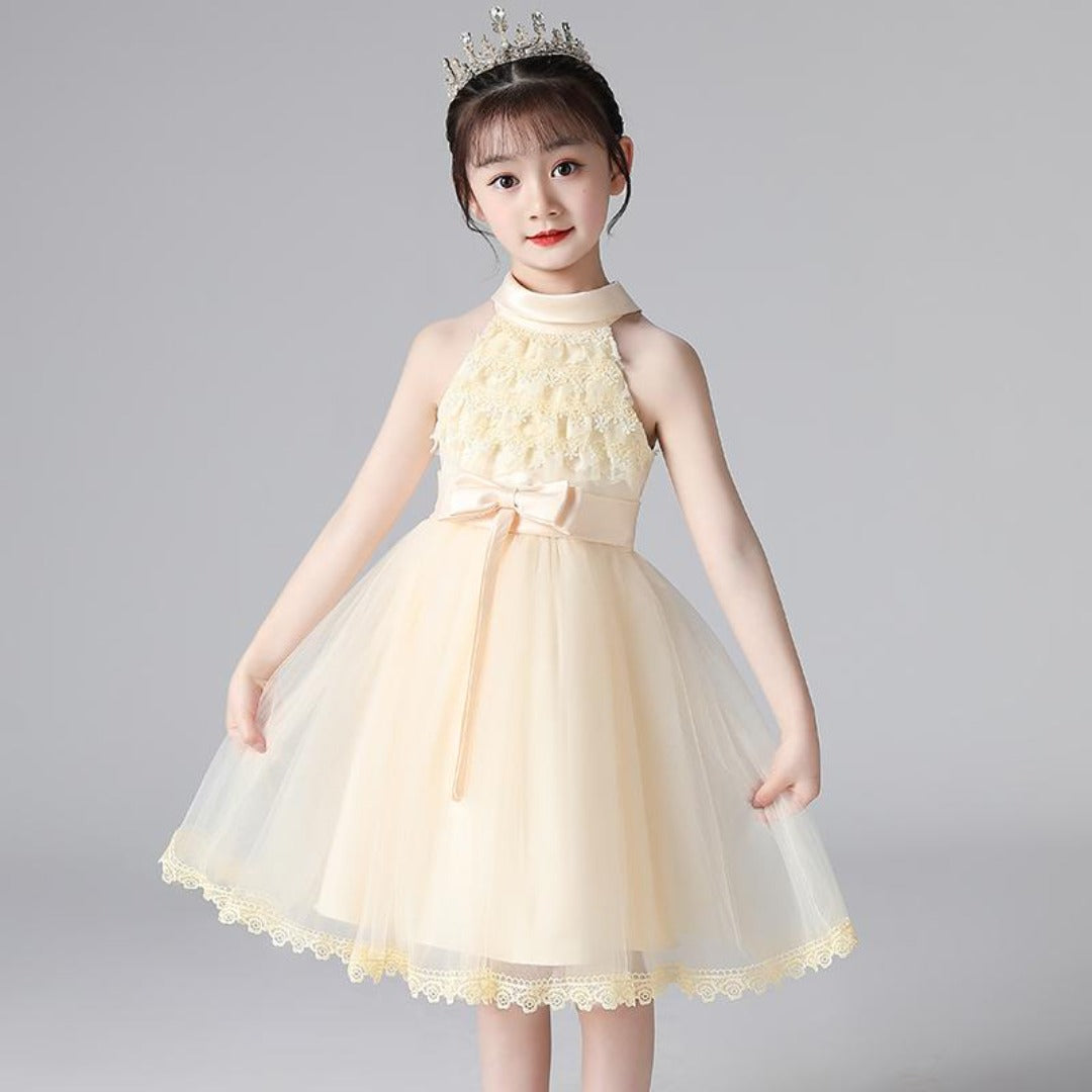 Halter Lapel Lace Flower Girl Princess Dress