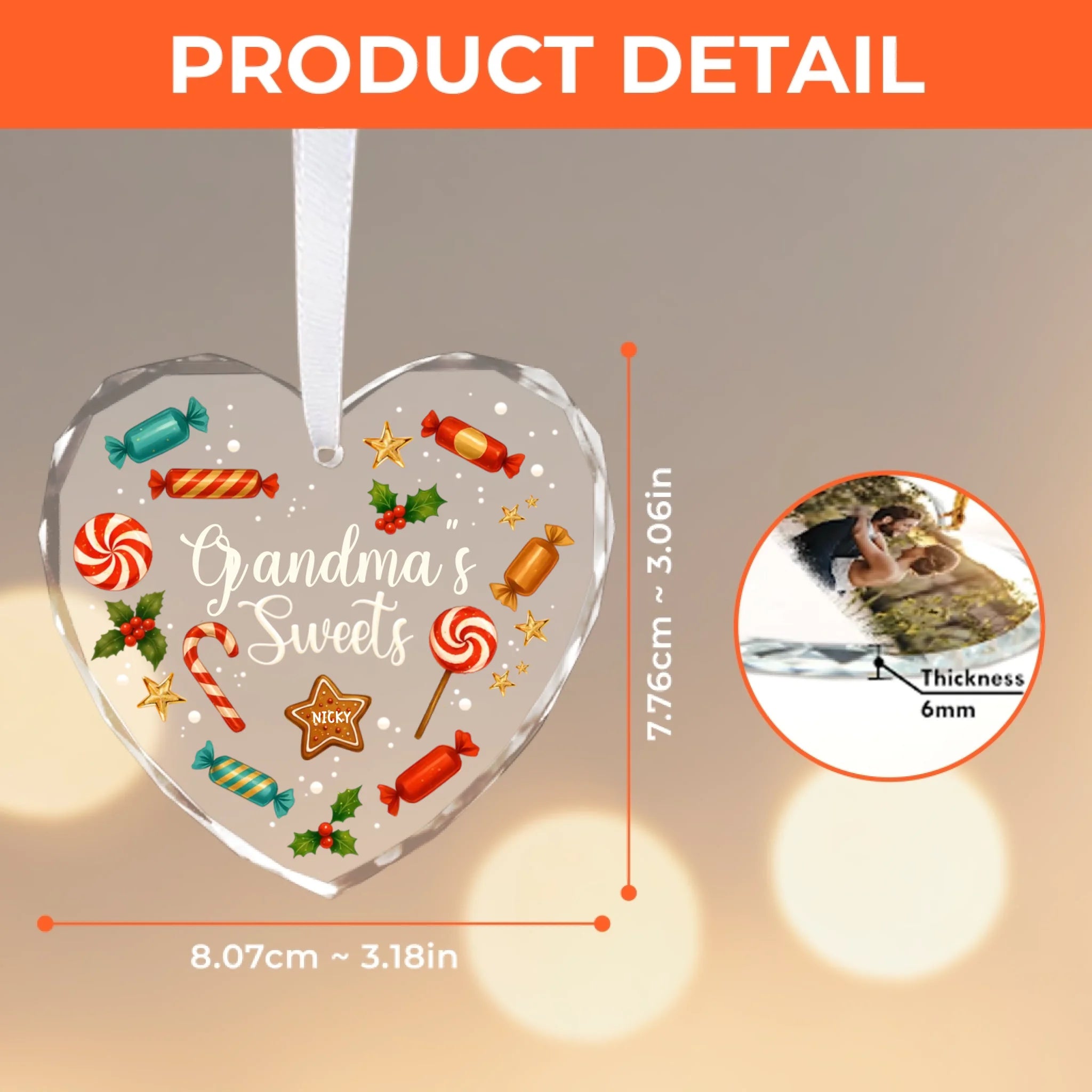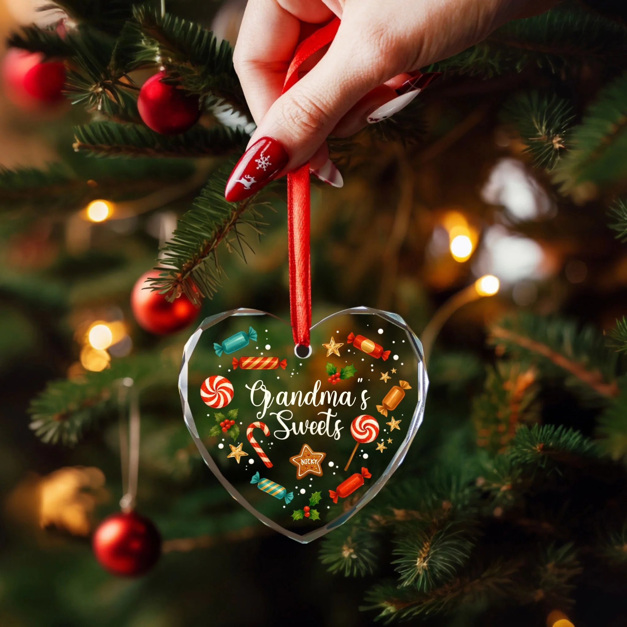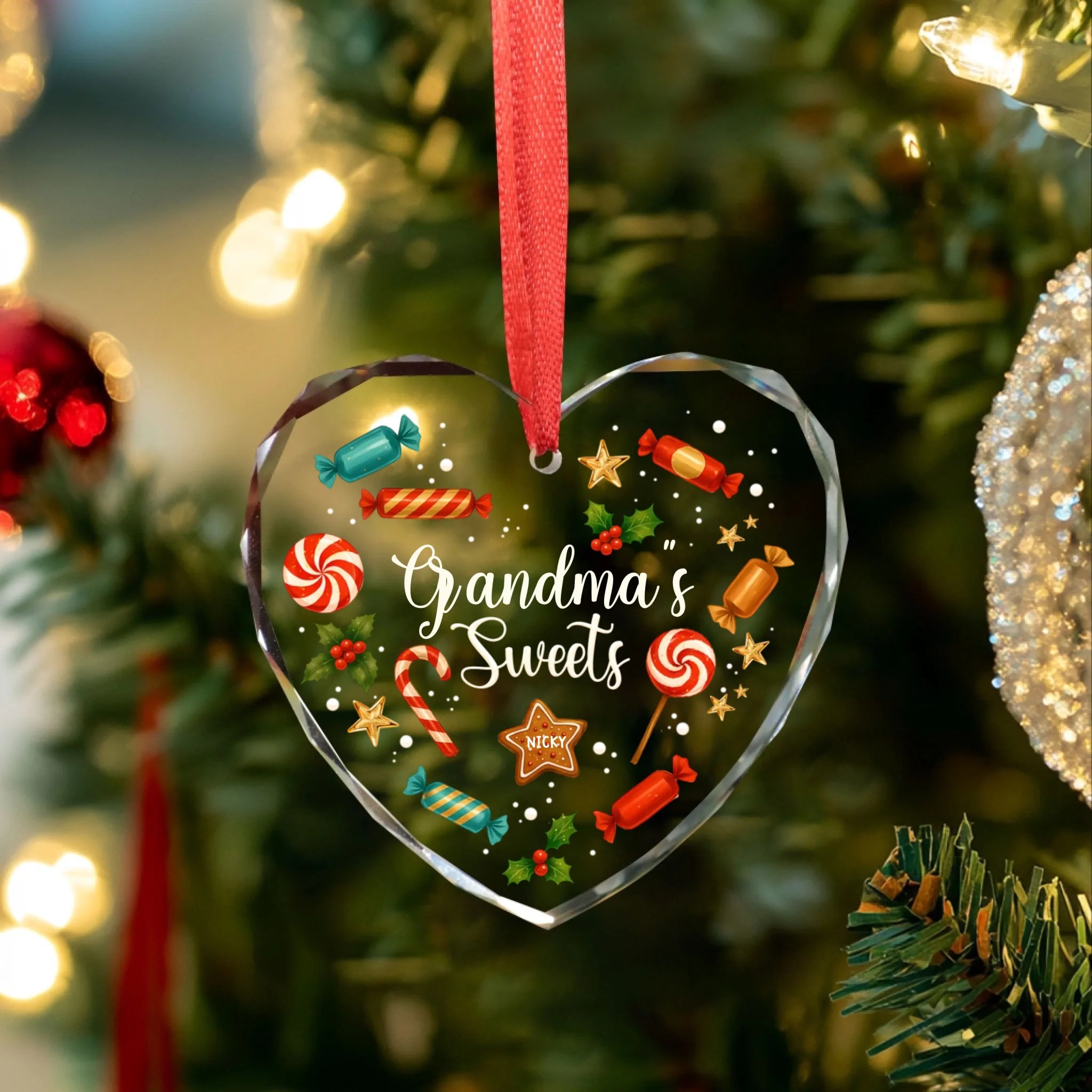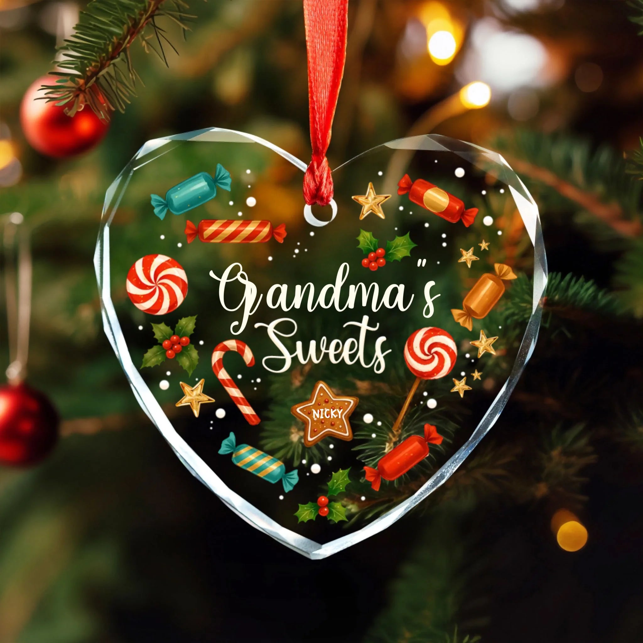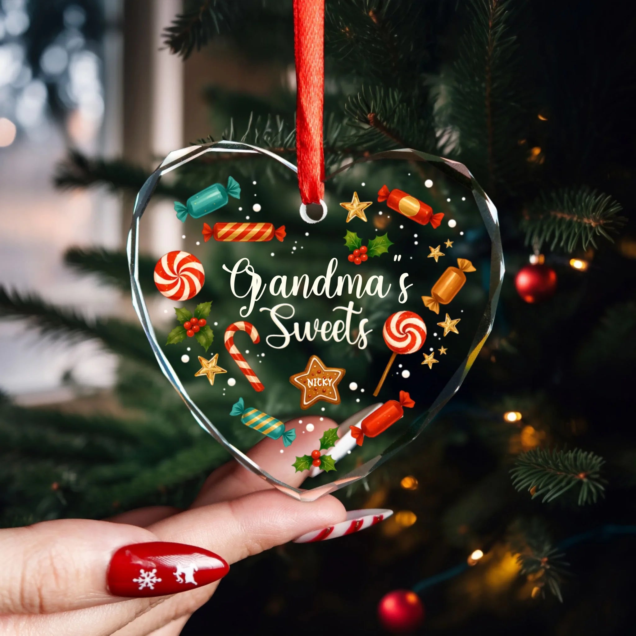 Personalized “Grandma’s Sweets” Christmas Heart Glass Ornament – Custom Grandma & Grandkids Names