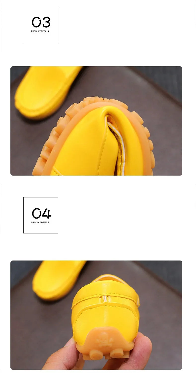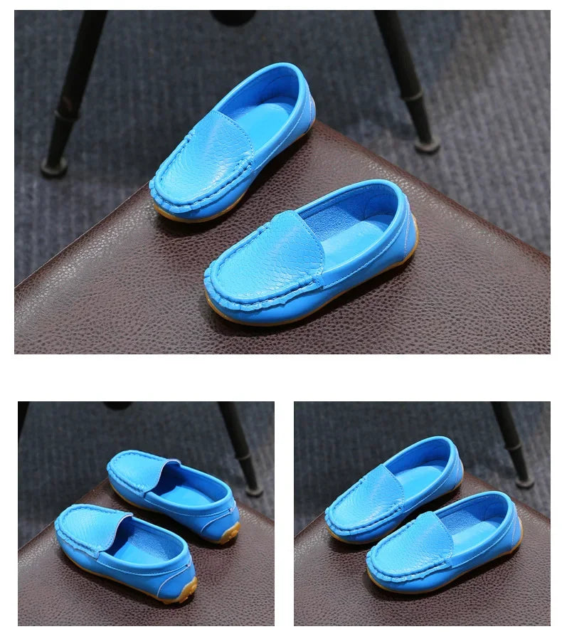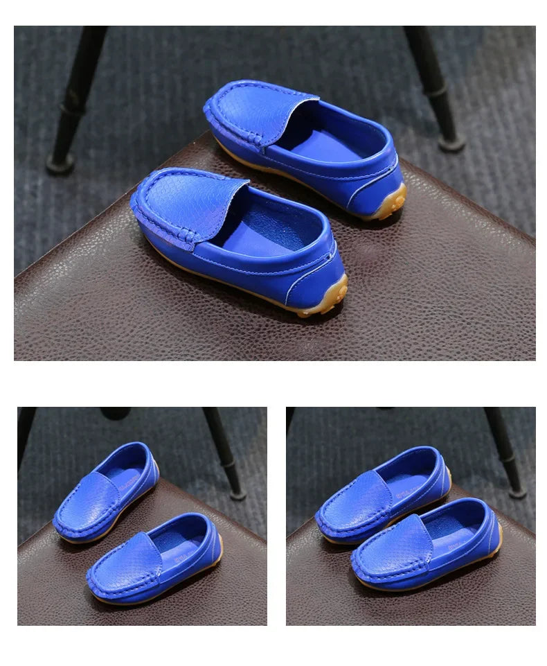 Kids' PU Leather Slip-On Moccasin Loafers: Black, White, Blue, Brown, Yellow