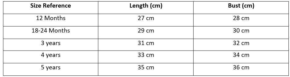 - Sizes (cm): 12M, 18M - 24M, 3 years, 4 years, 5 years