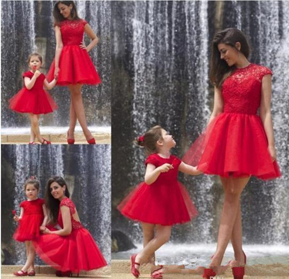 Lace Top Red Cocktail Mom & Me Dress