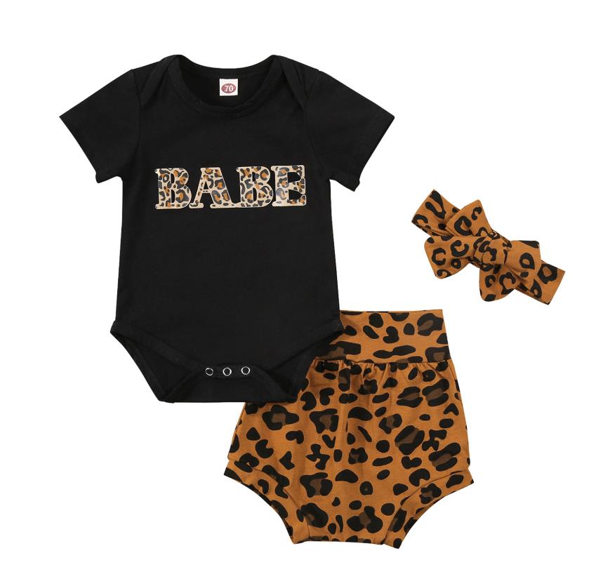 - Long-sleeve classy plain black bodysuit, with exclusively leopard printed shorts.