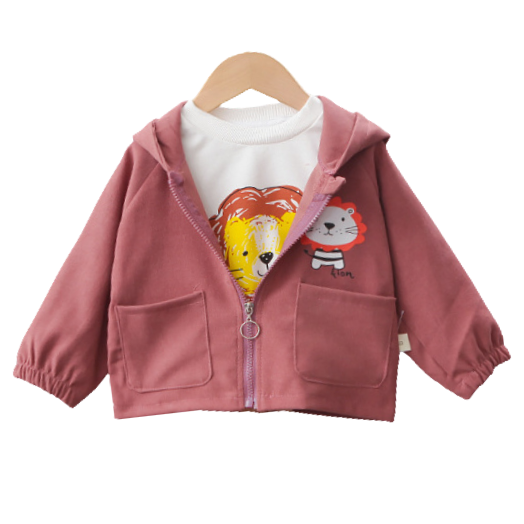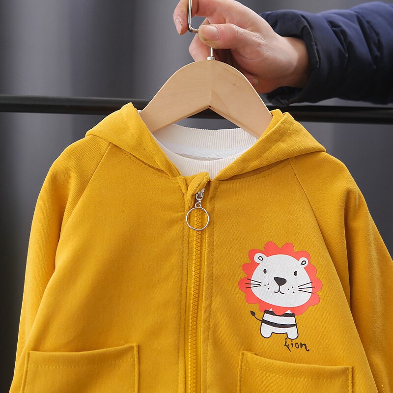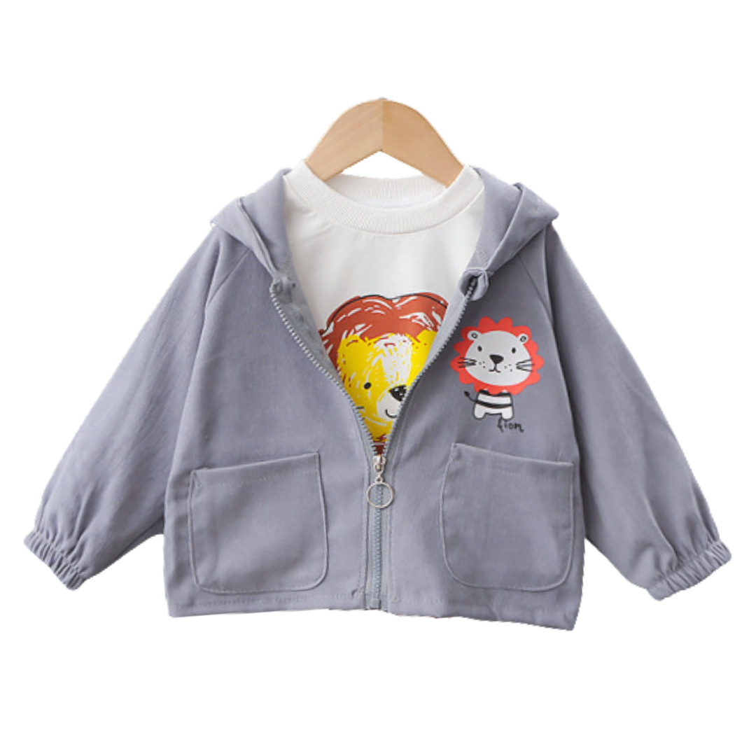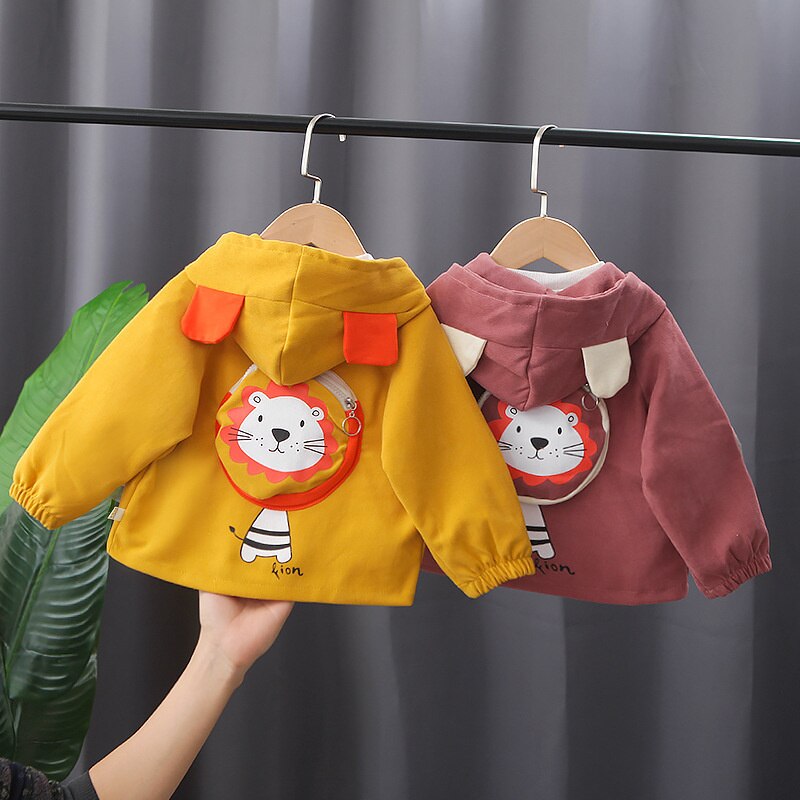 Lion Cartoon Graphic Print Hooded Jacket