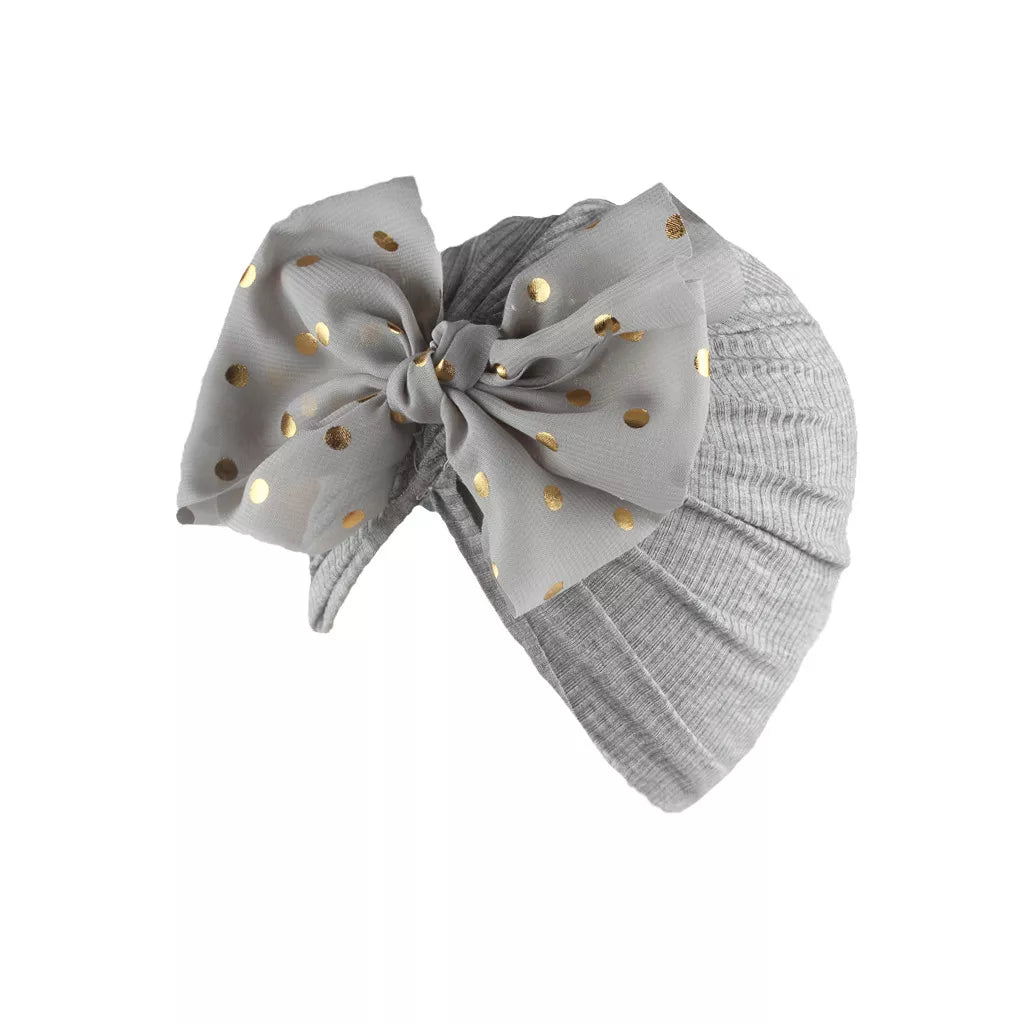 Lovely Shiny Bowknot Baby Hat: Cute Solid Color Turban