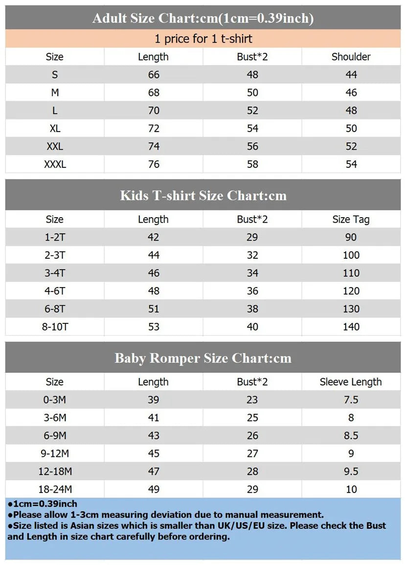 - ๐จโ๐ฉโ๐งโ๐ฆ Matching Family Set: Available for mother, father, and kids, these T-shirts allow the whole family to coordinate their outfits and express their love for each other.