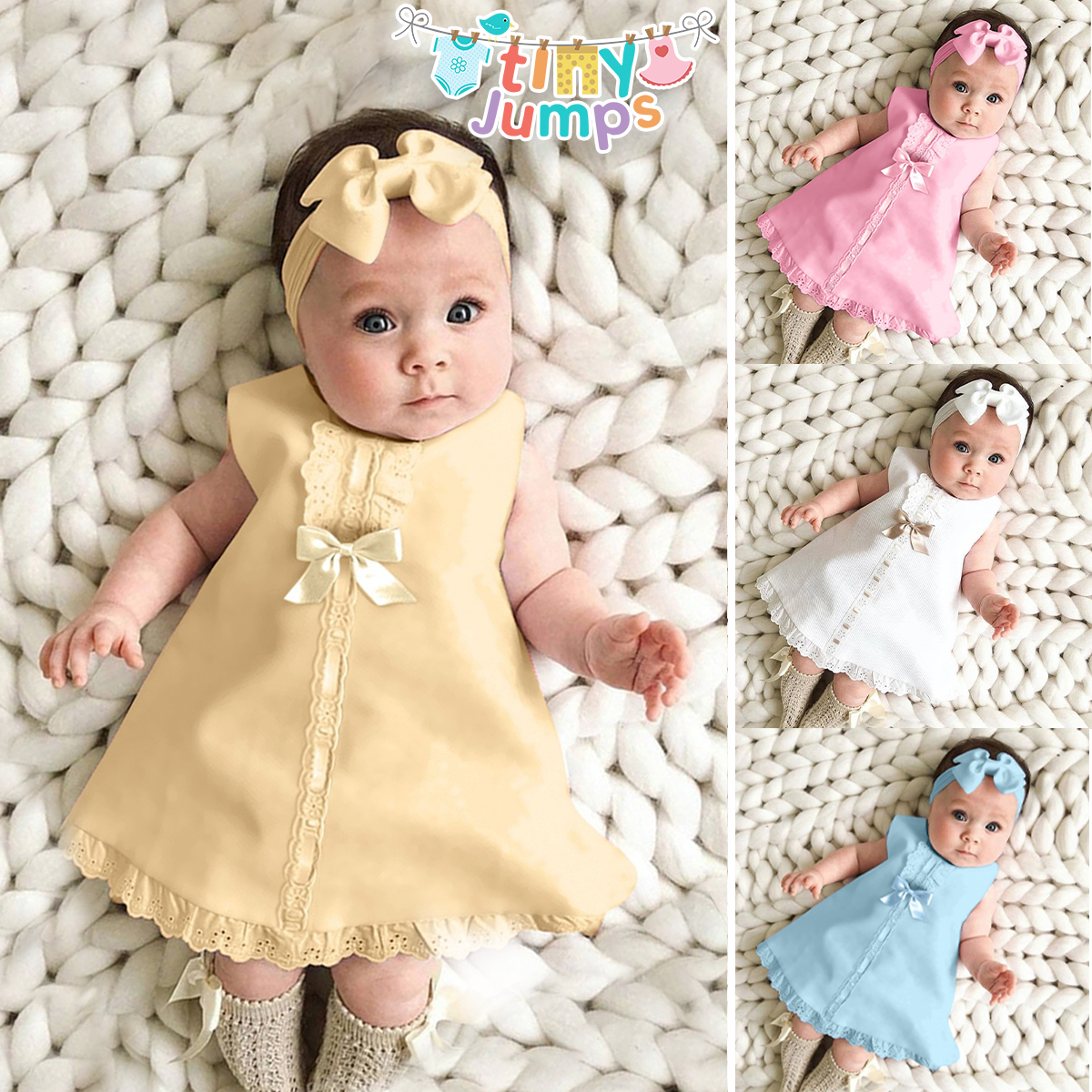 Adorn your little angels with our adorable maxi dress that comes with a matching headband. The sleeveless dress has a lace design on the neckline and borders. There is an adorable little bow on the headband and the chest. The maxi has a catch shutting for simple evolving. The dress is made of cotton and polyester which is delicate on a child's skin. It is intended for the adorable look of your little pixie's fairy.
