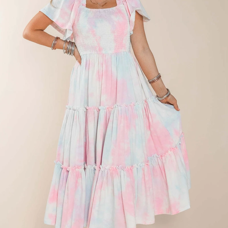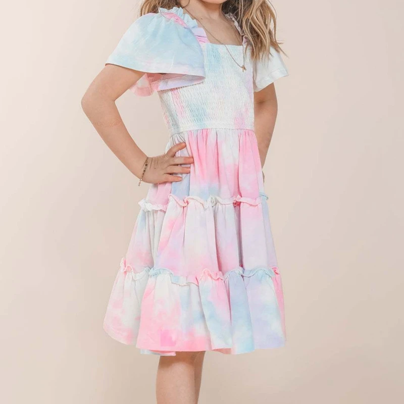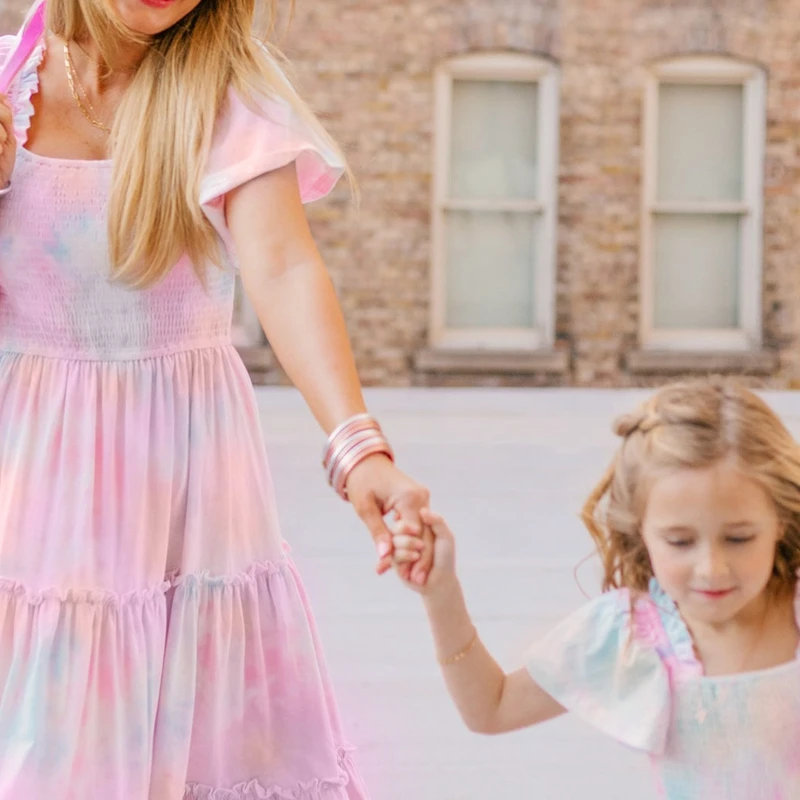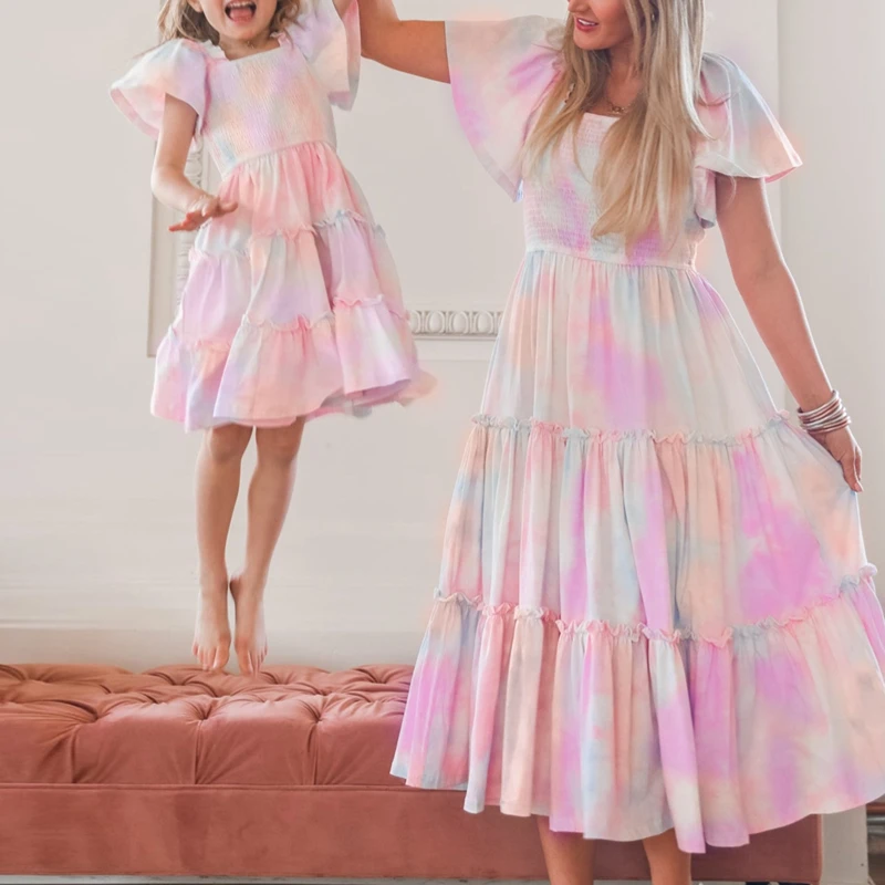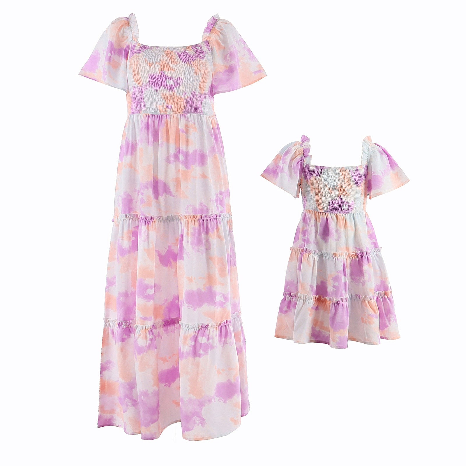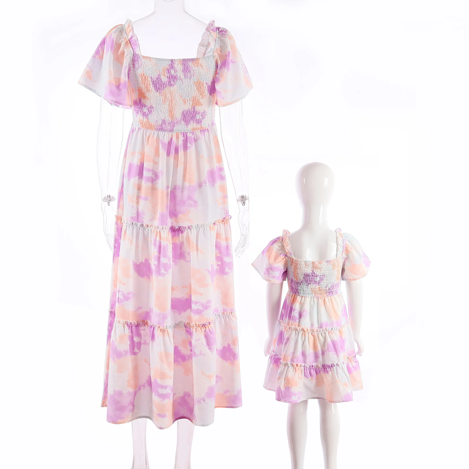 Mother Daughter Matching Dress Tie-dyed Puff Sleeve Long