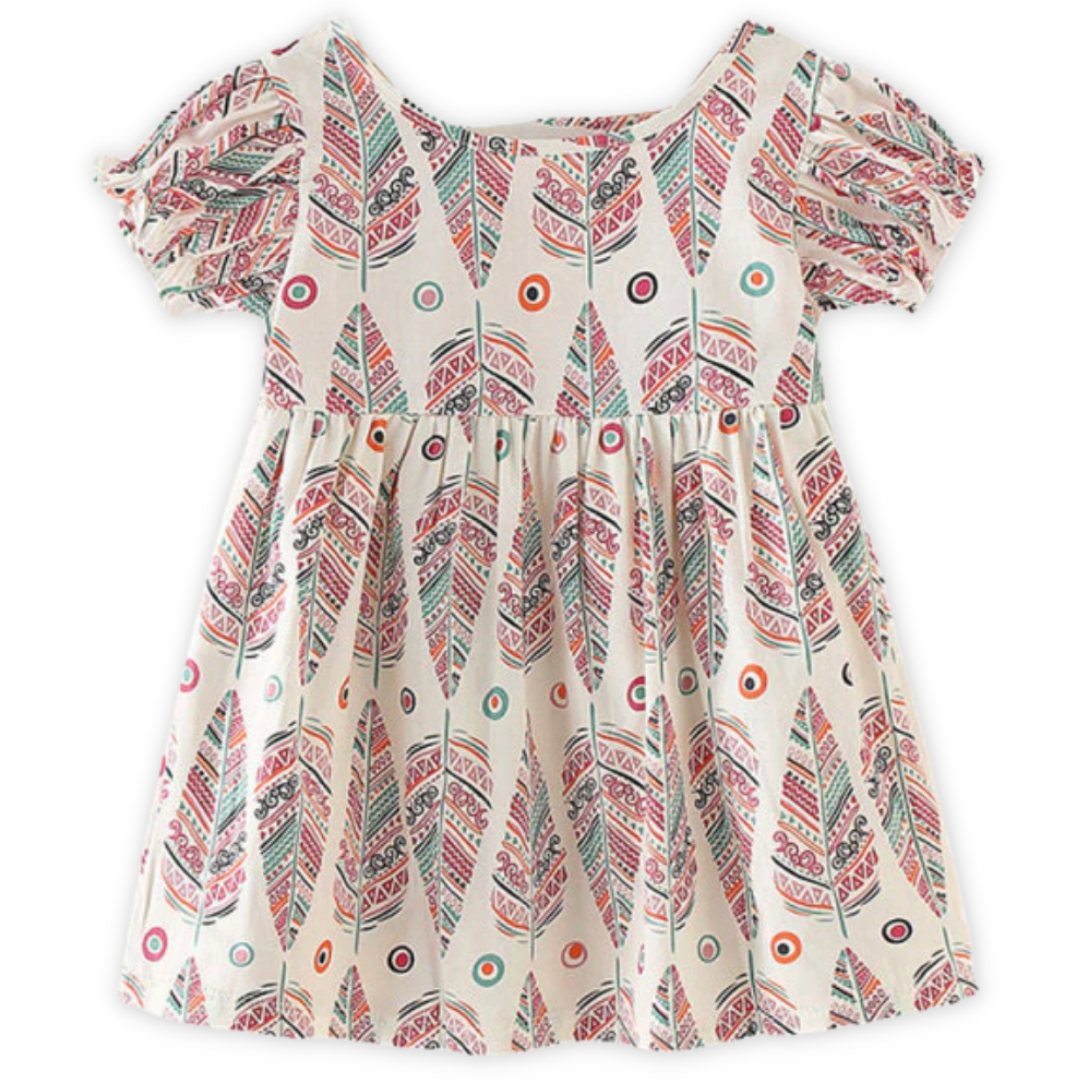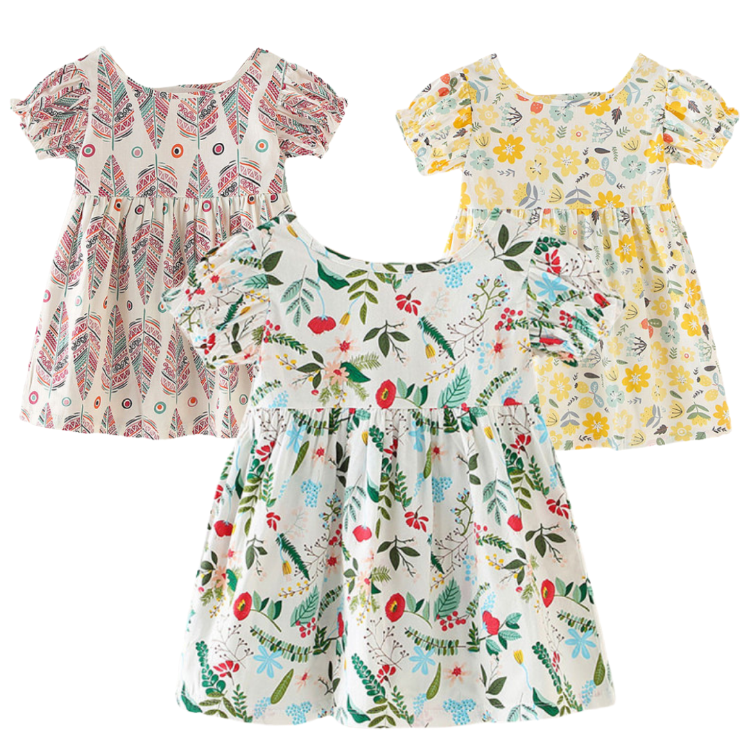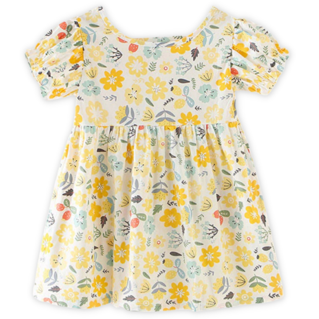 Nature Pattern Print Baby Girl Puff Sleeves Sundress