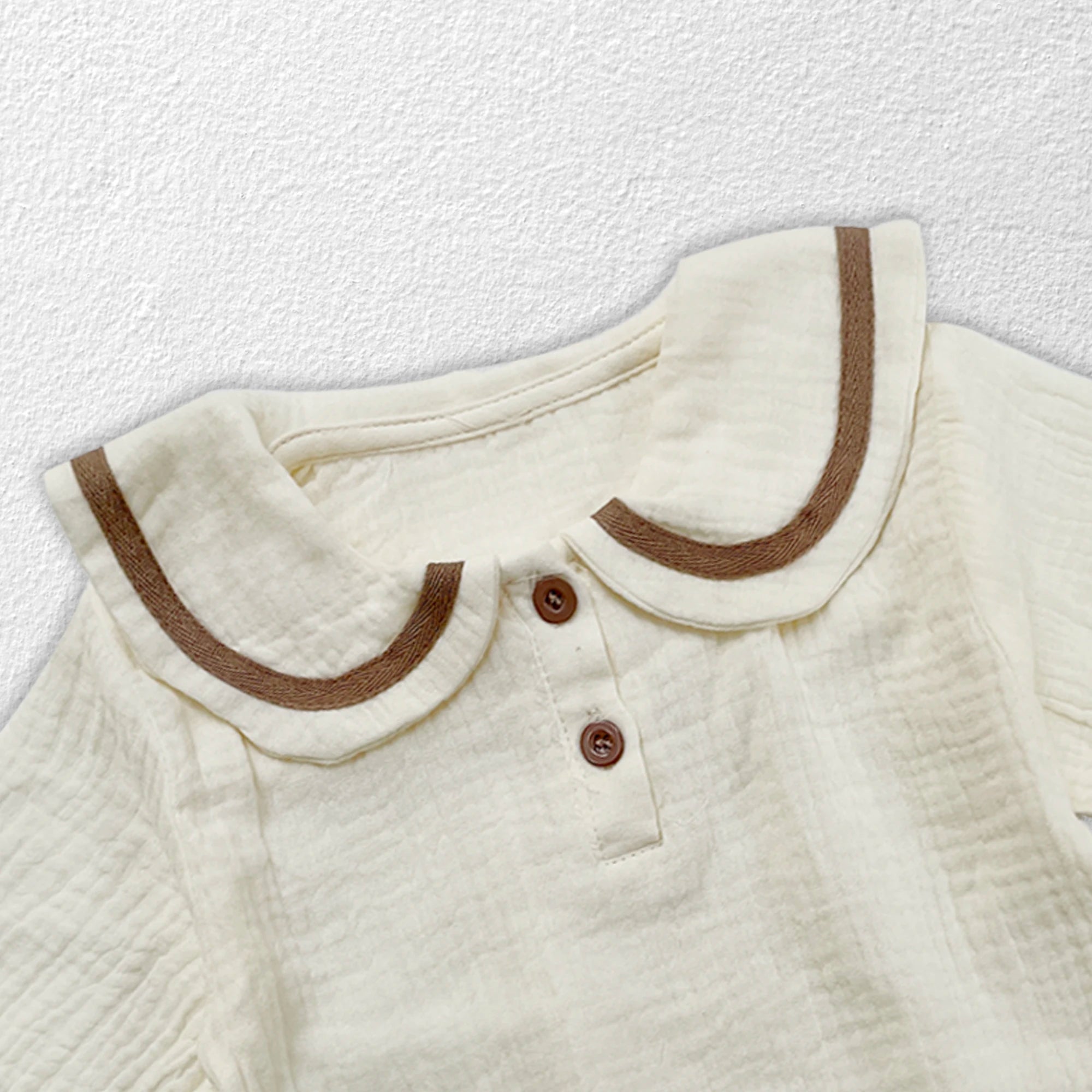 Elevate your little one's autumn wardrobe with our charming clothing set. The Newborn Baby Autumn 2pcs Clothing Set features a stylish Navy Collar Top paired with comfortable Solid Bread Bottoms, providing both fashion and comfort for newborns to 24 months.